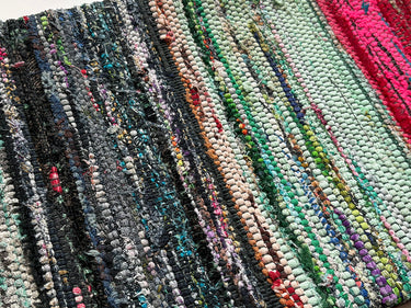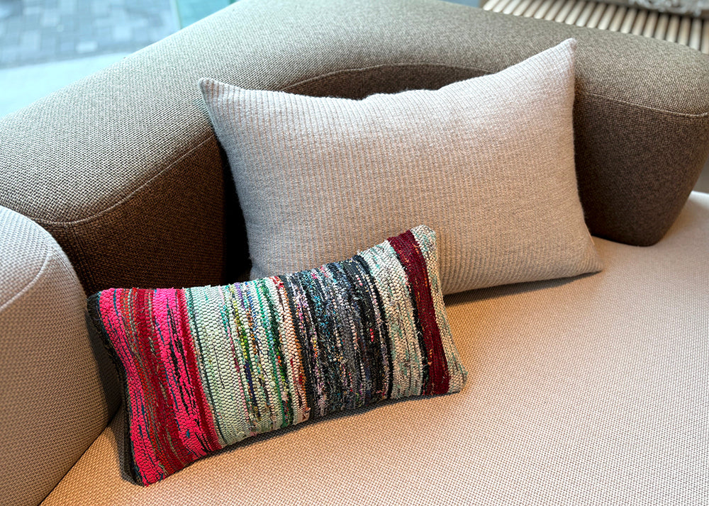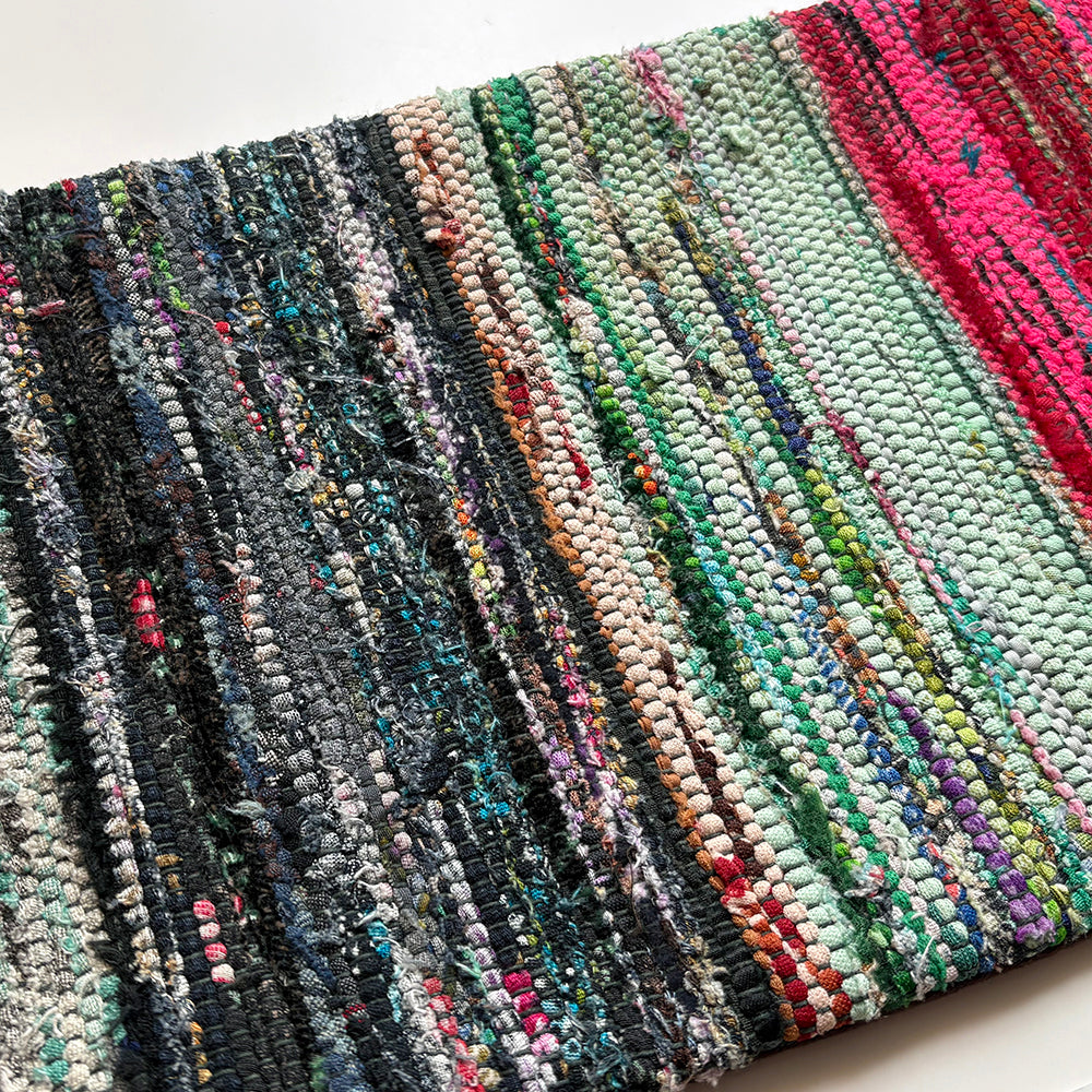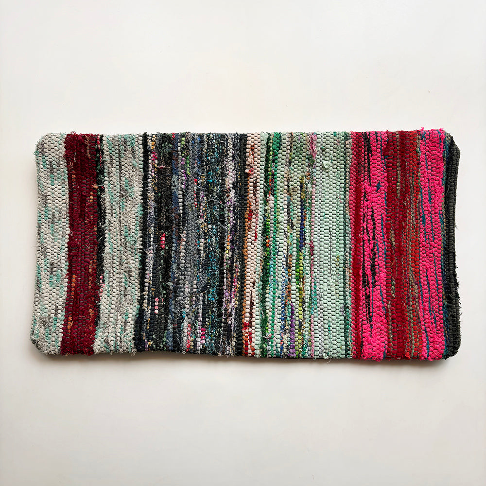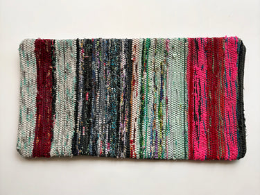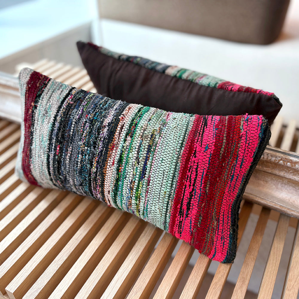 この Kilim Cushion(キリムクッション)は、ROGOBA(ロゴバ)が Old Textile(オールドテキスタイル・裂き織り)を加工して作製した、腰当てにぴったりな大変めずらしいサイズのクッションカバーです。