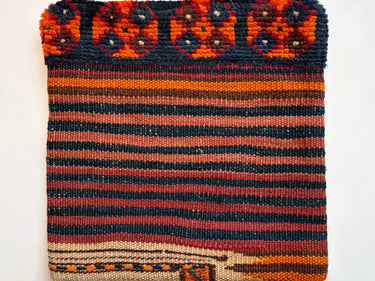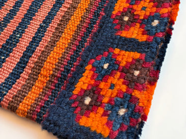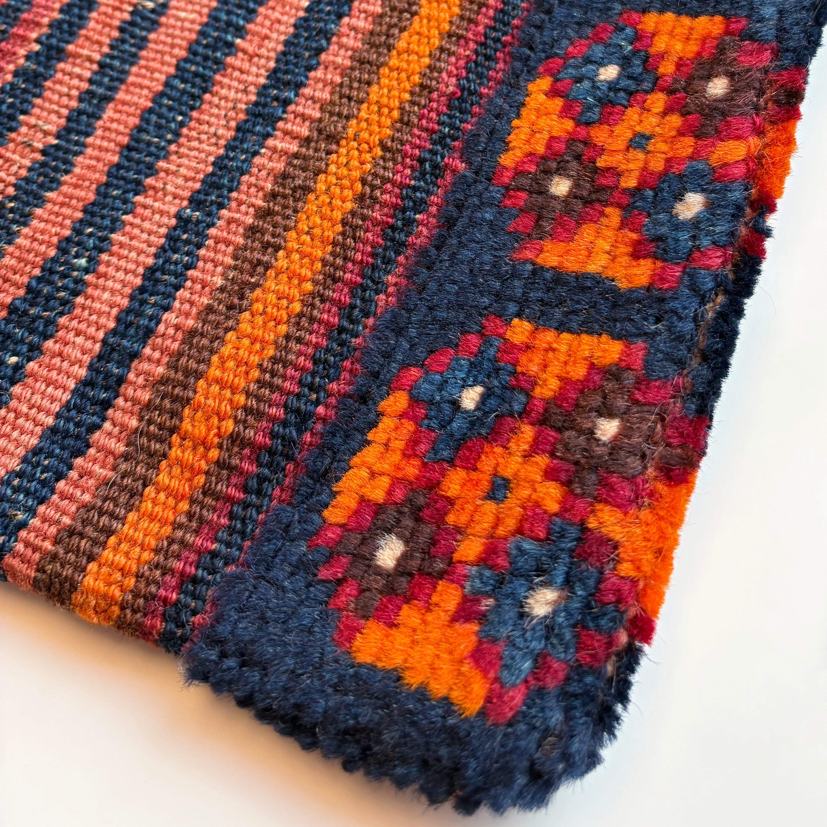 刺繍の部分、絨毯の部分、キリムの部分のある、非常に華やかで豊かな織りの楽しい貴重なクッションです。