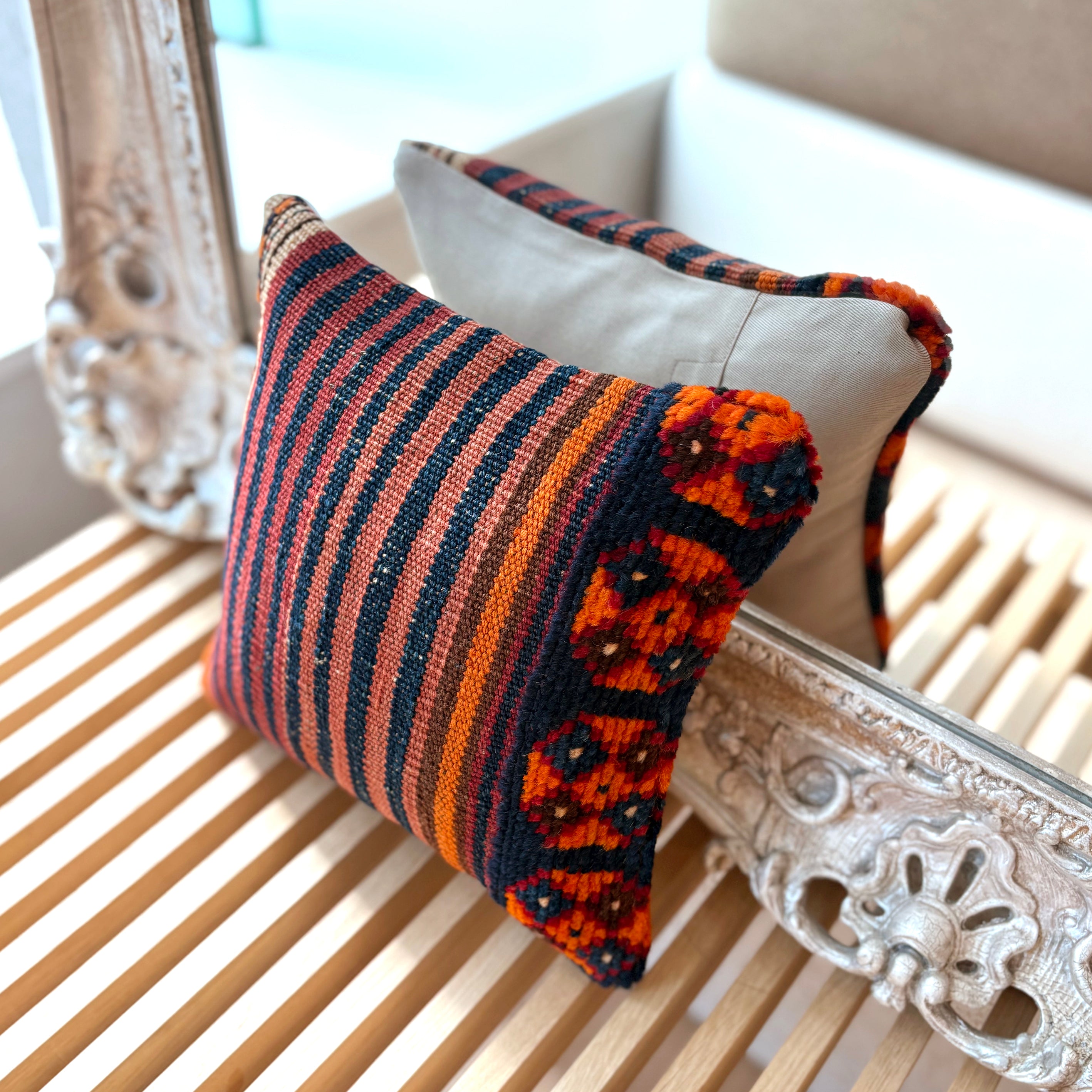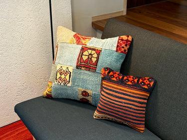 お部屋にこの手作りで本物のキリムクッションが一つあるだけで、その雰囲気は一転します。