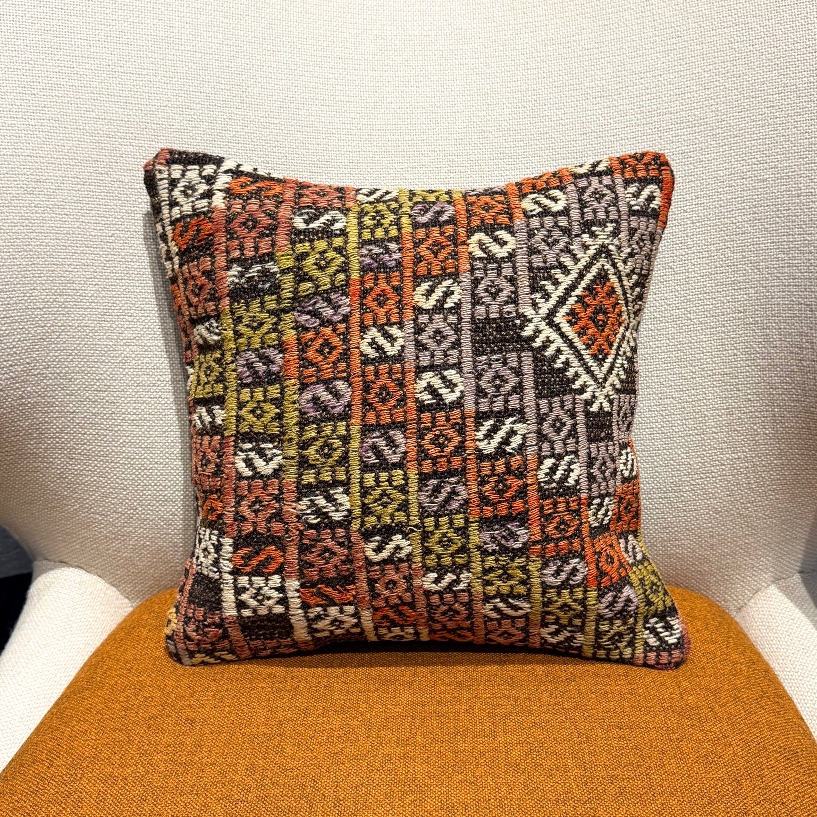 ジジム(文様部分が刺繍されています) が一面に広がった可愛らしいキリムクッションです。