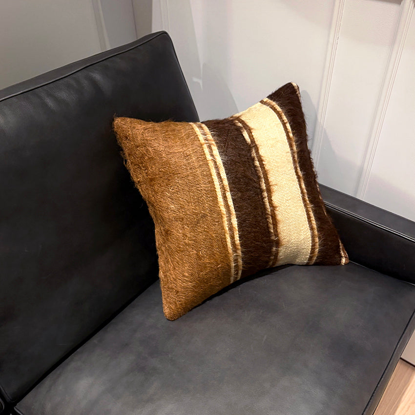 毛足のあるアンティークバッタニエ(キリム)を使用した優しく落ち着いた、触り心地の良いクッションです。