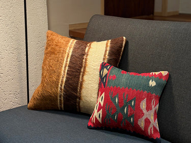 お部屋にこの手作りで本物のキリムクッションが一つあるだけで、その雰囲気は一転します。