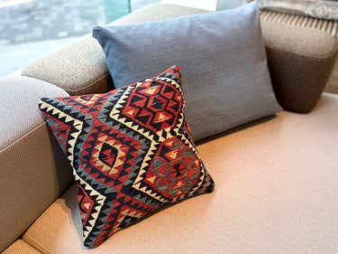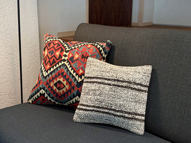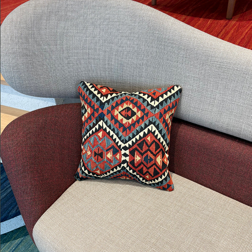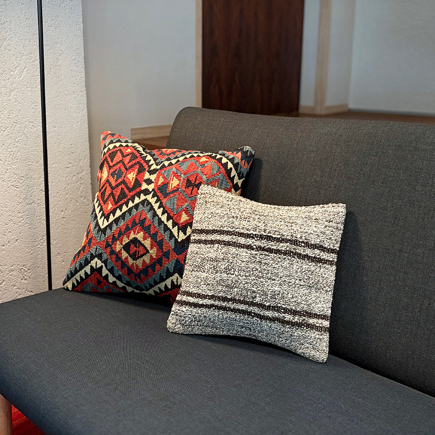 お部屋にこの手作りで本物のキリムクッションが一つあるだけで、その雰囲気は一転します。