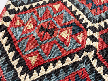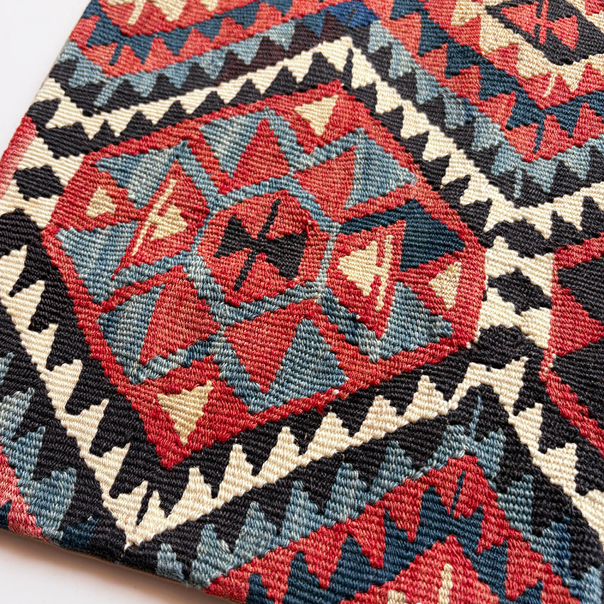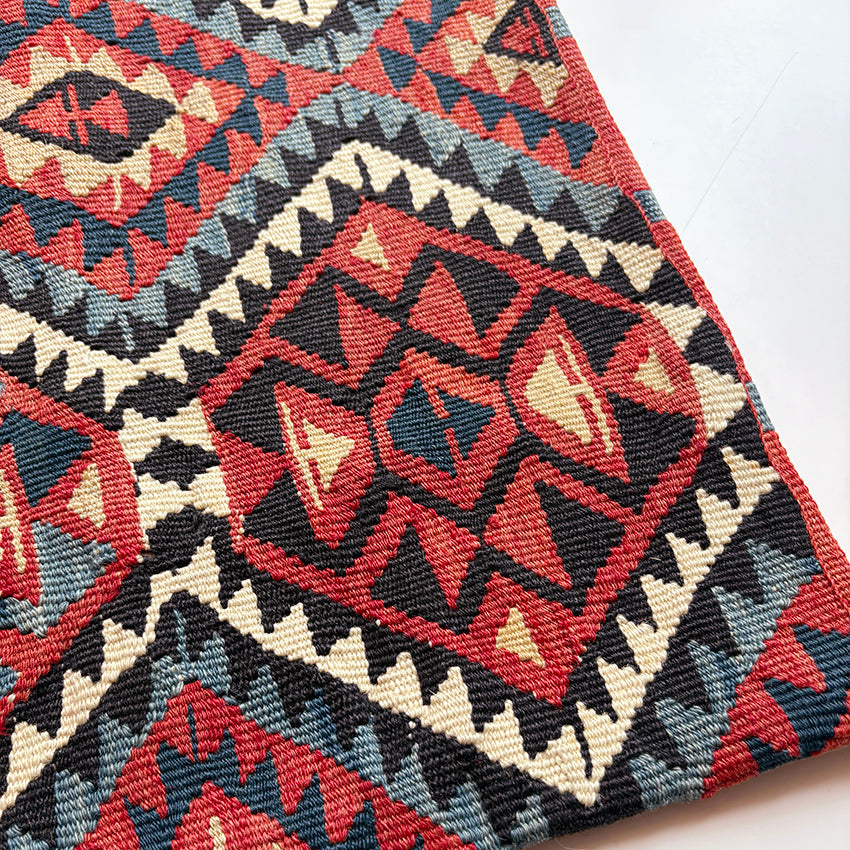 アブラッシュ がとても美しく、華やかで可愛らしいキリムクッションです。