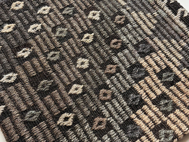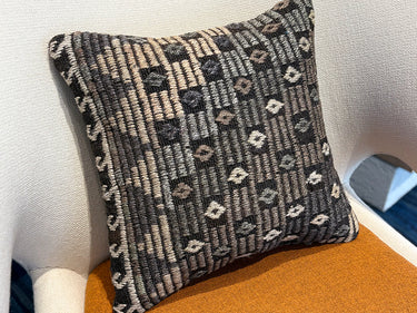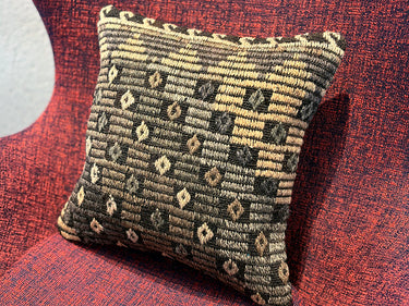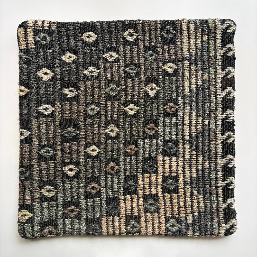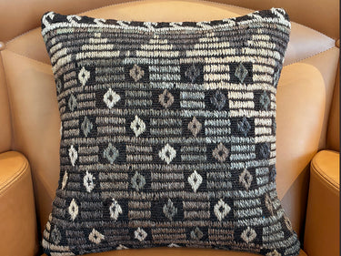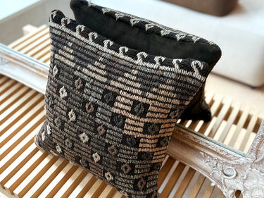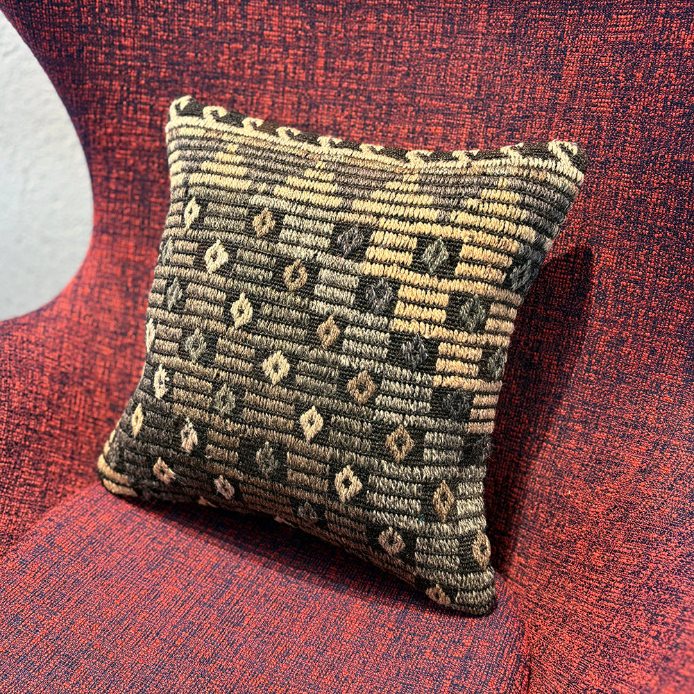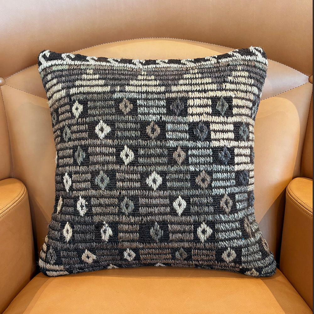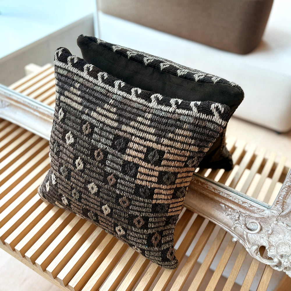 ゴート(山羊)の毛で織られた地模様にジジム(文様部分が刺繍されています)が使われたシックな印象のクッションカバーです。