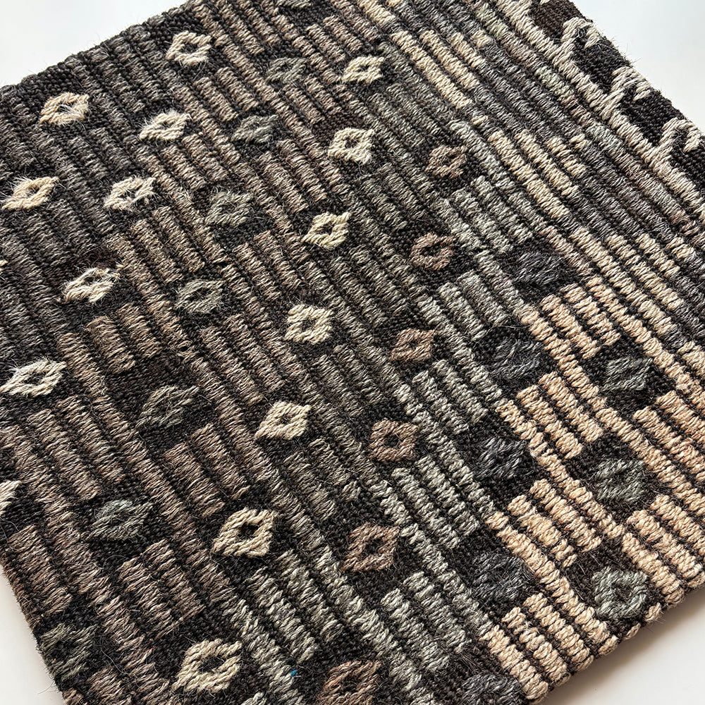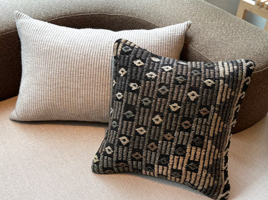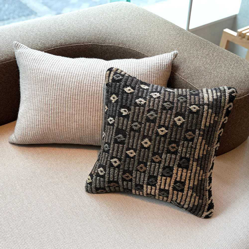 ゴート(山羊)の毛で織られたこのクッションはしっかりとした質感があり、自然な光沢もあります