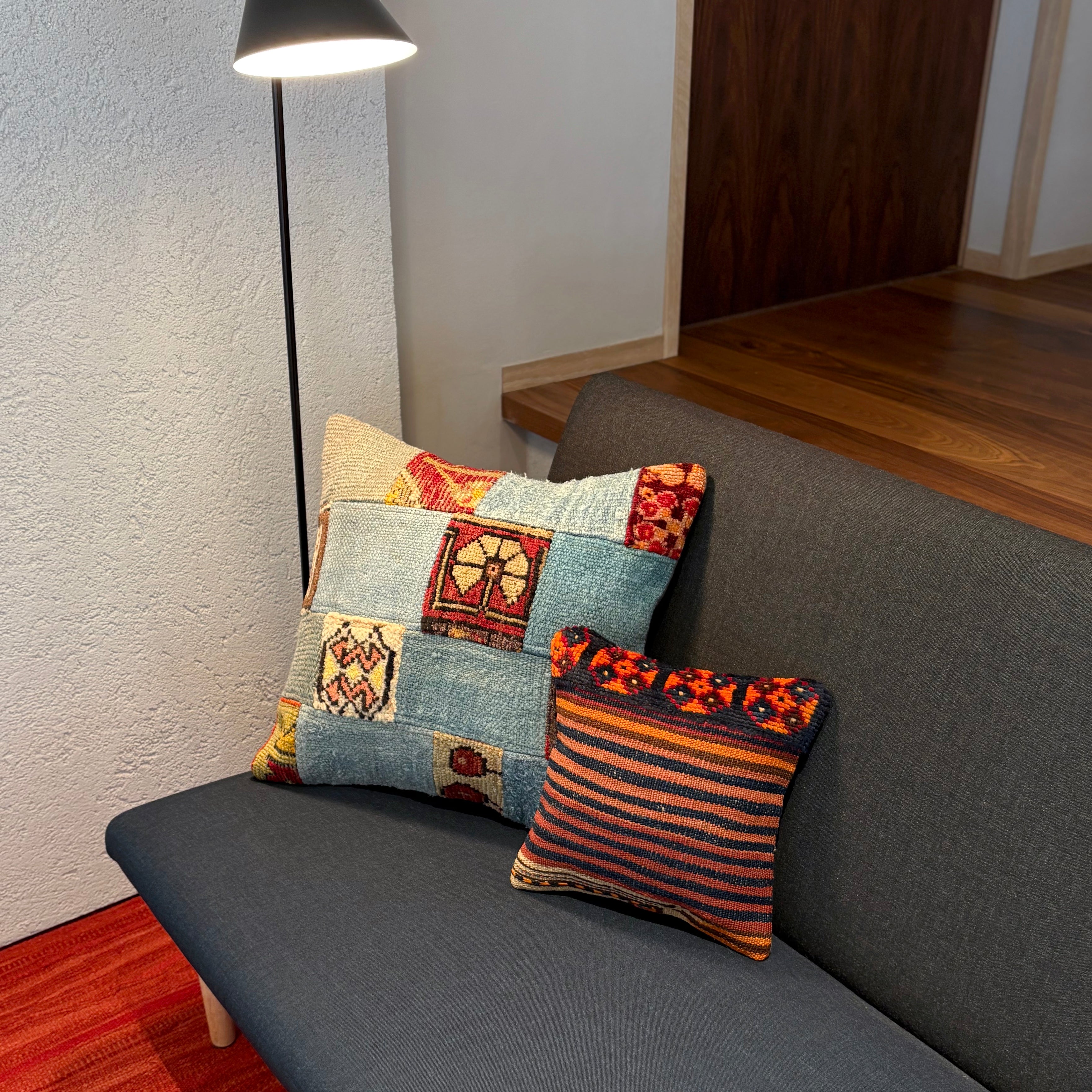 お部屋にこの手作りで本物のキリムクッションが一つあるだけで、その雰囲気は一転します。