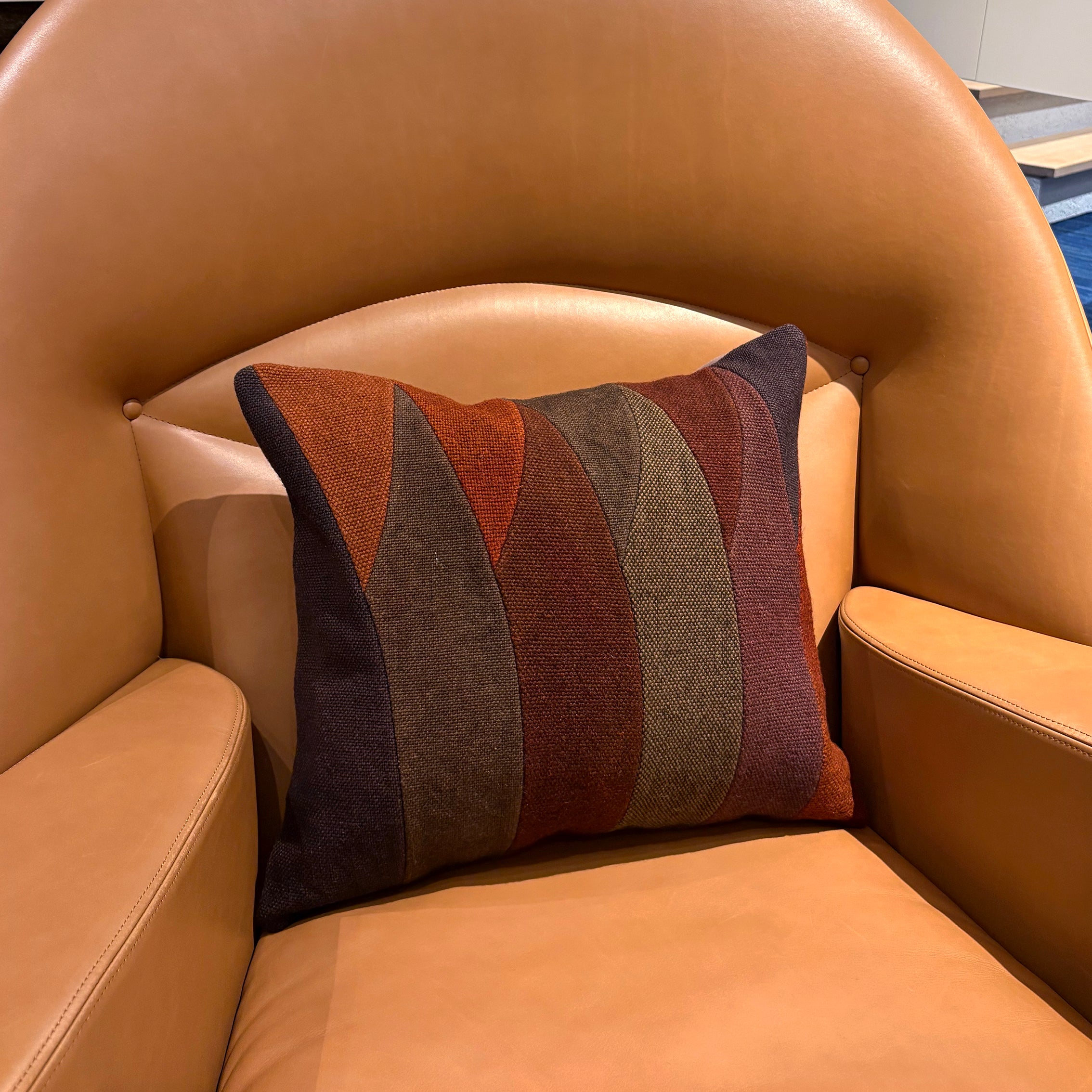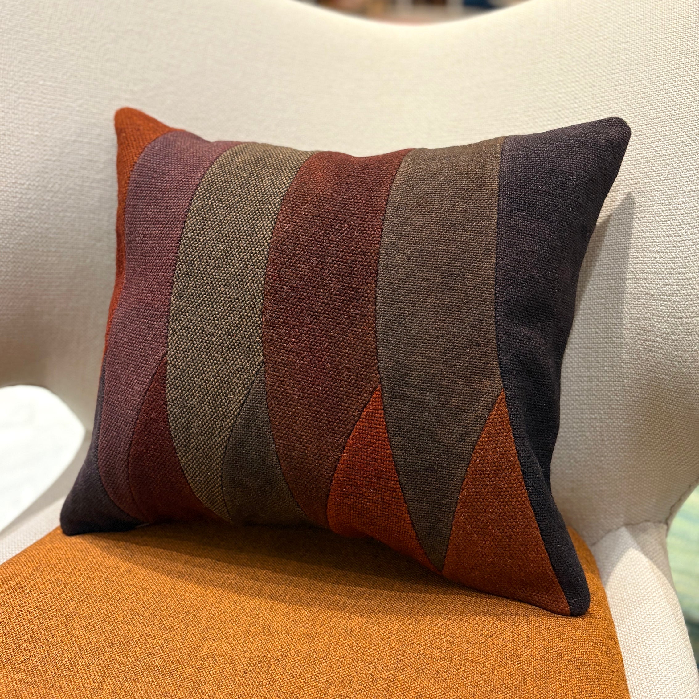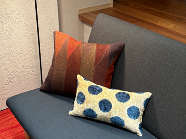 この Kilim Cushion (キリムクッション) は、手紡ぎの良質なウールを美しく草木染めし、織り上げたテキスタイルで作られています。