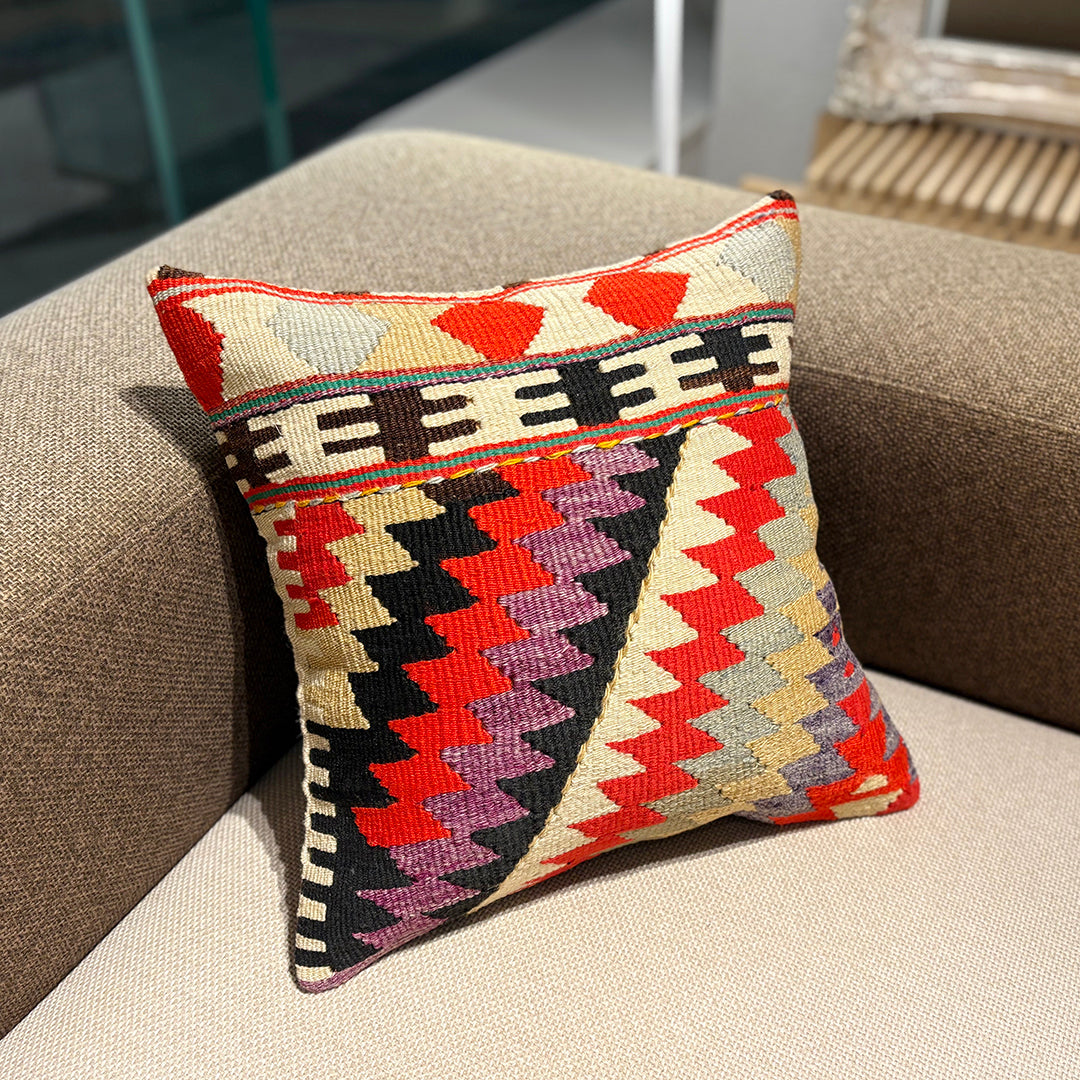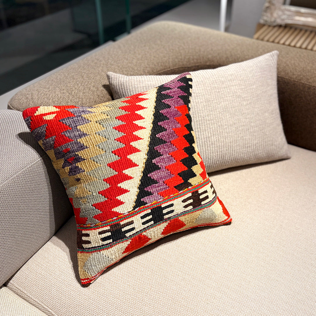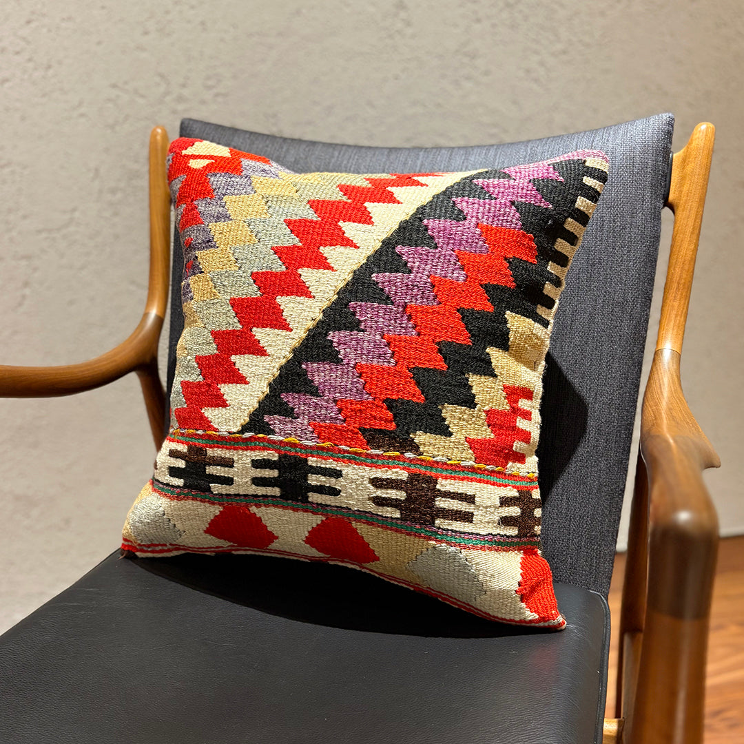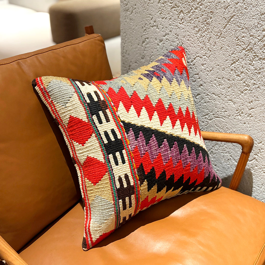 お部屋にこの手作りで本物のキリムクッションが一つあるだけで、その雰囲気は一転します。