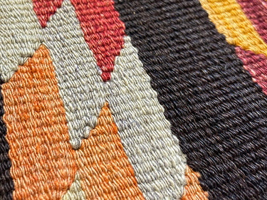 シンプルでありながら、カラフルな色の組み合わせが可愛らしいキリムクッションです。
