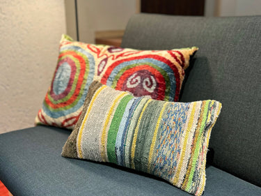お部屋にこの手作りで本物のキリムクッションが一つあるだけで、その雰囲気は一転します。
