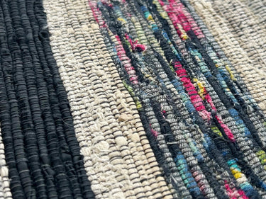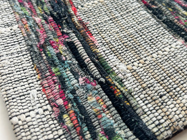 ユニークなストライプ柄のキリムクッションです。お部屋に爽やかで涼しげな印象をもたらし、手触りもサラッと心地よいです。