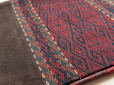 アンティークキリム(ジャジム)の複雑で細やかな織り模様と、シルクの深みのある落ち着いた色合いが、長い年月を経てきたことによる独特の味わい深さを感じさせせてくれます。