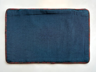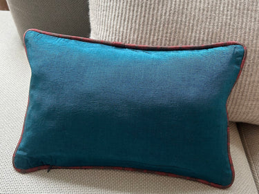 縁取りの赤茶色のような落ち着いた色合いのパイピングが上品なアクセントになり、細部のデザインへのこだわりが高いクオリティの高いクッションです。