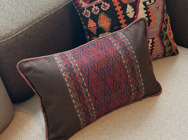 お部屋に遊牧民達の作品への愛が感じられるこのキリムクッションが一つあるだけで、その雰囲気は一転します。