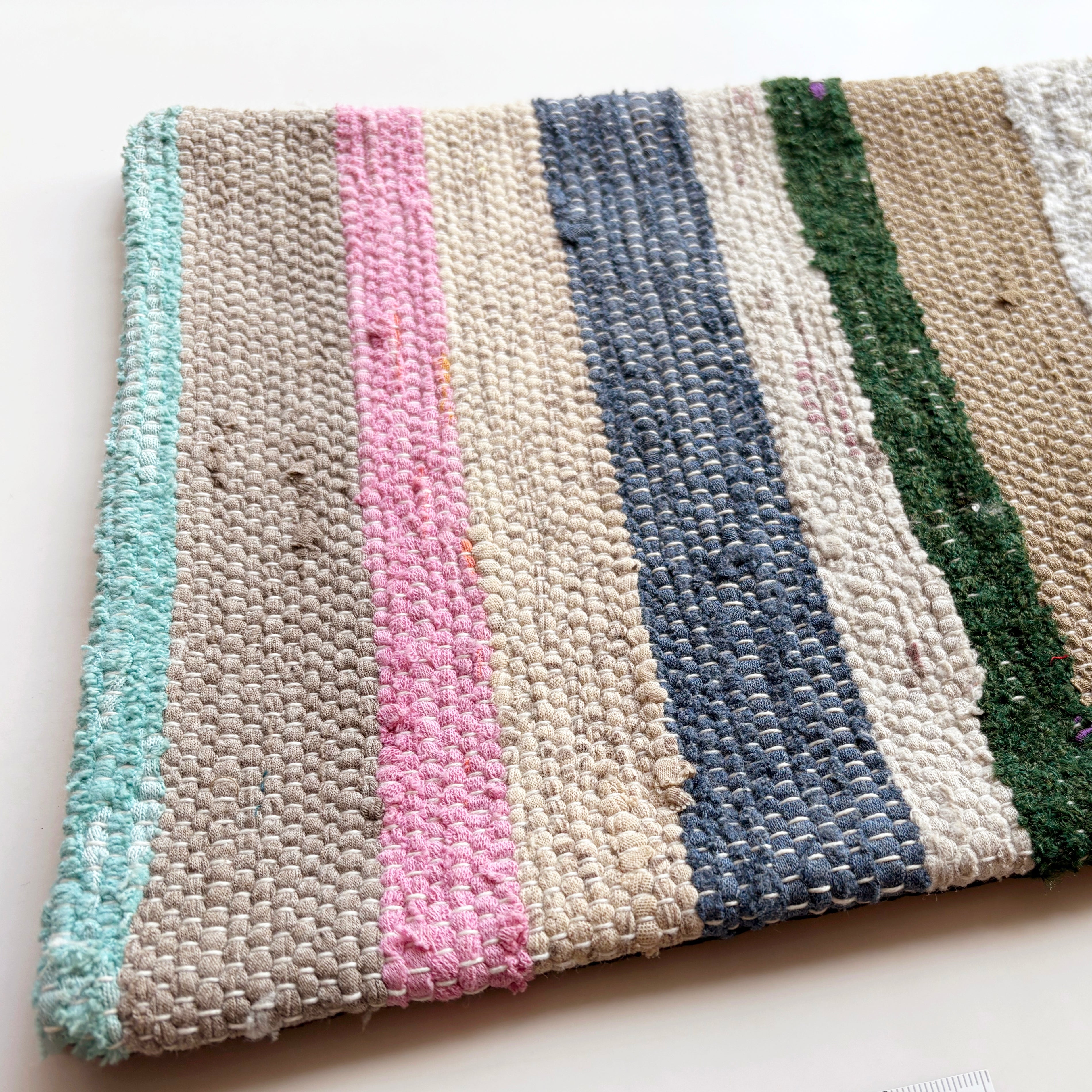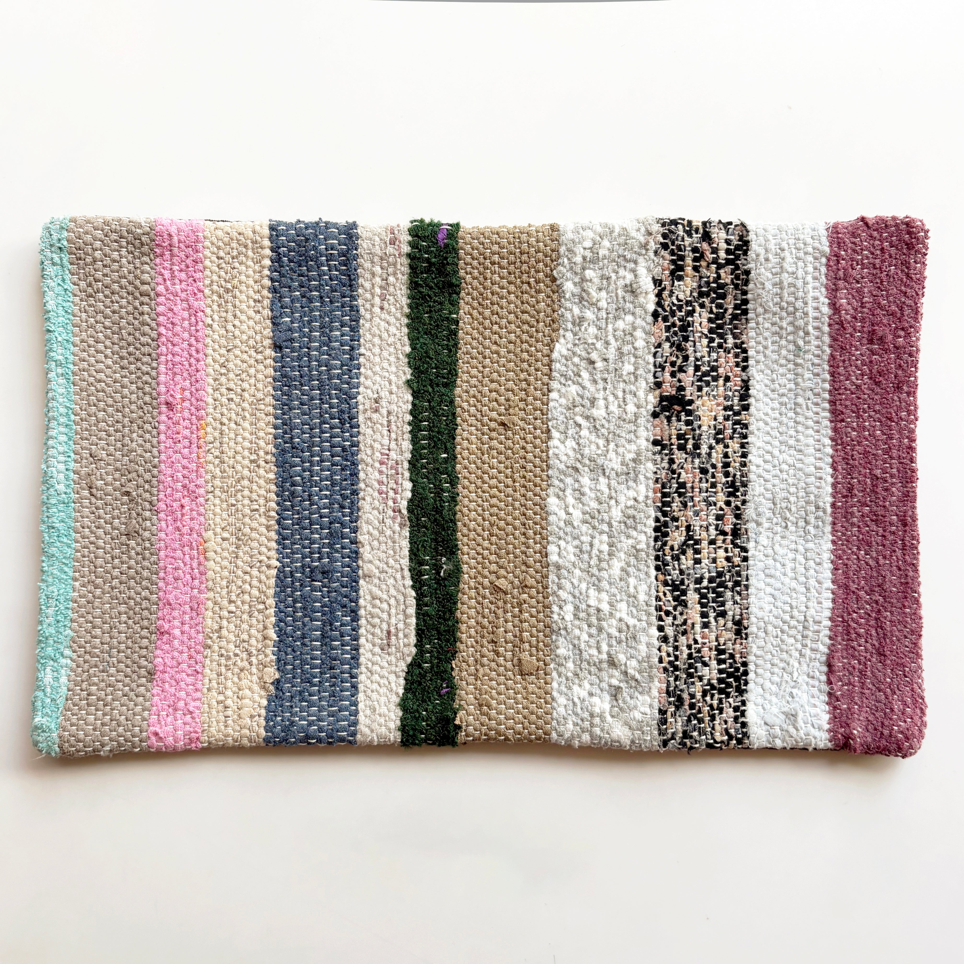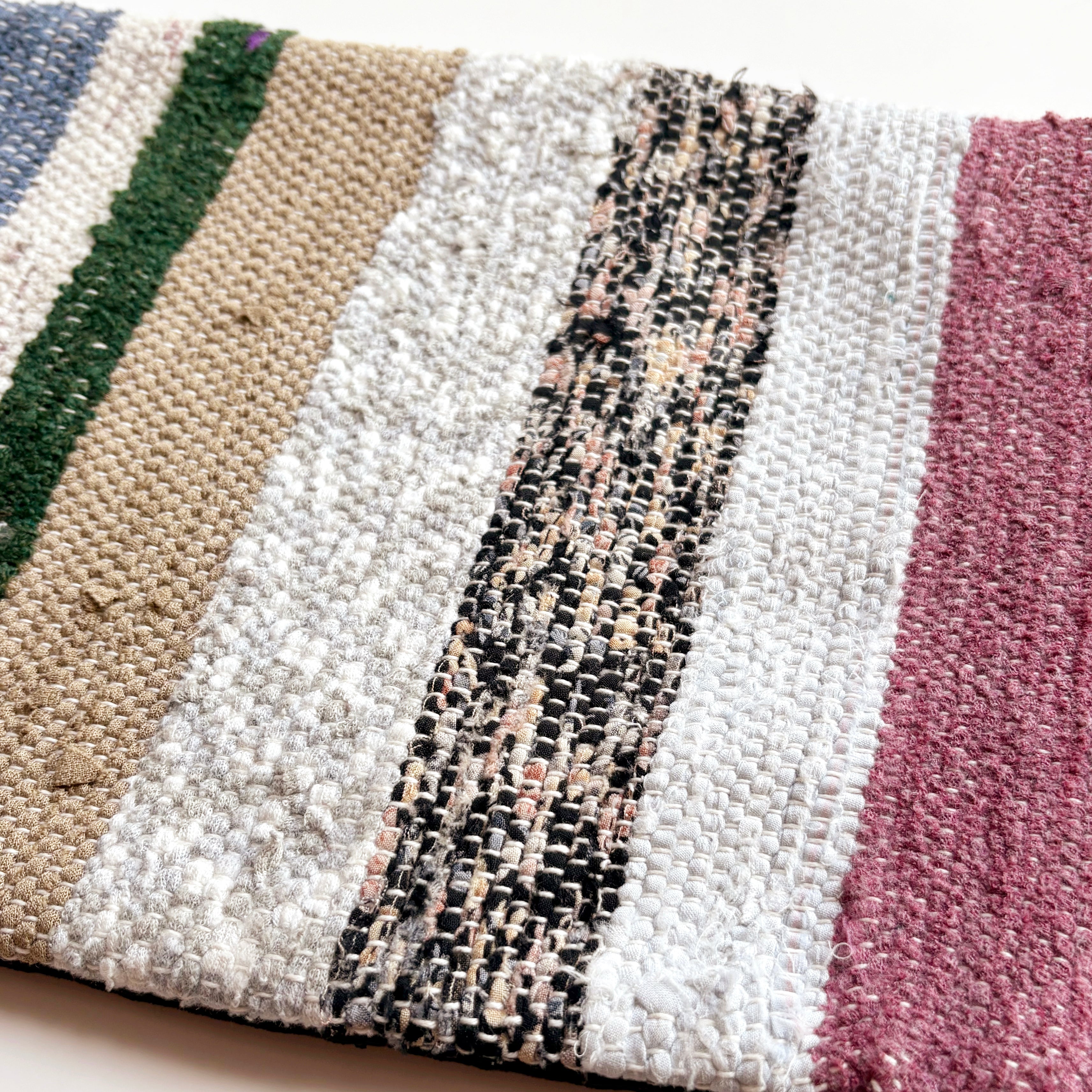 この Kilim Cushion(キリムクッション)は、ROGOBA(ロゴバ)が Old Textile(オールドテキスタイル・裂き織り)を加工して作製した、腰当てにぴったりな大変めずらしいサイズのクッションカバーです。