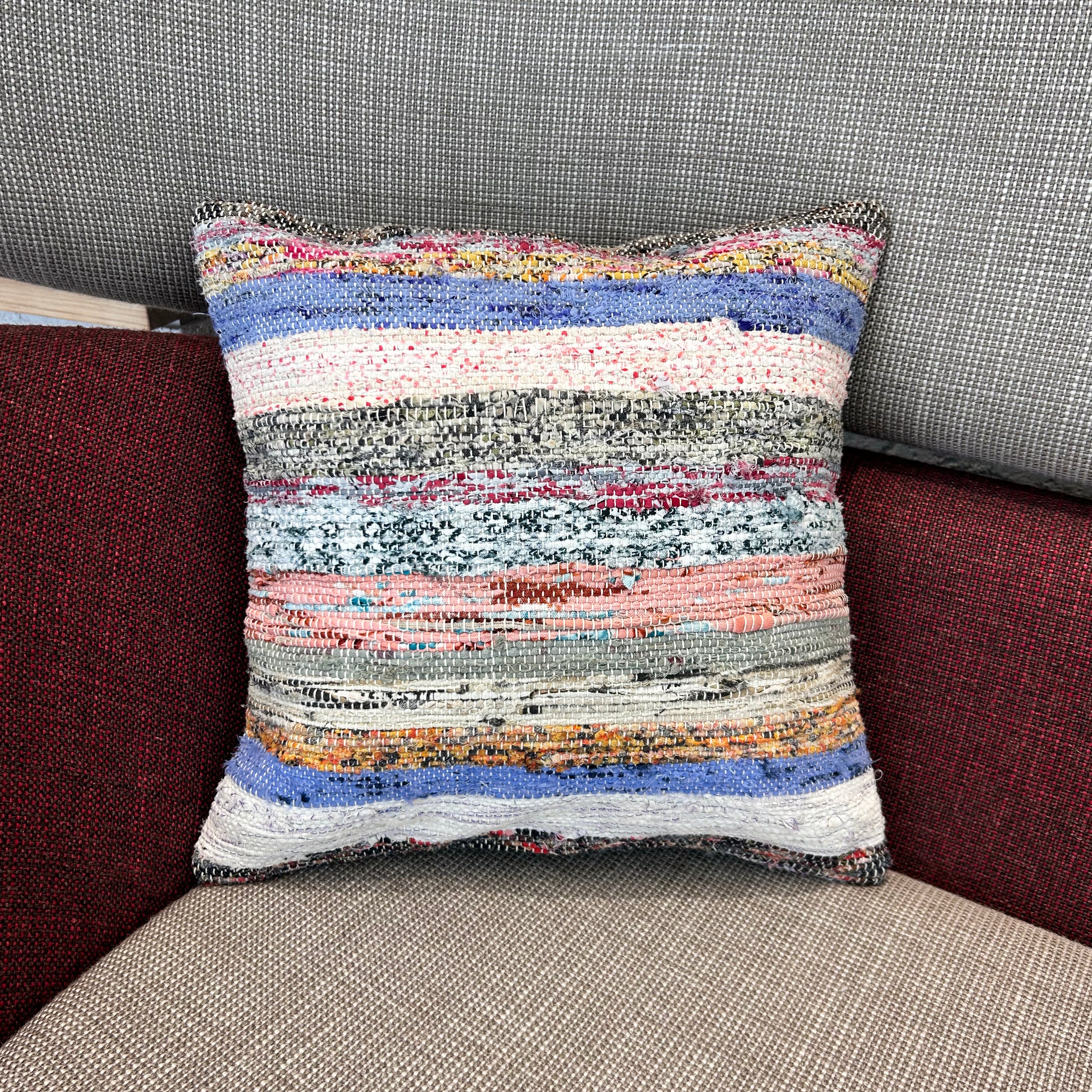 この Kilim Cushion(キリムクッション)は、ROGOBA(ロゴバ)が Old Textile(オールドテキスタイル・裂き織り)を加工したキリムクッションです。