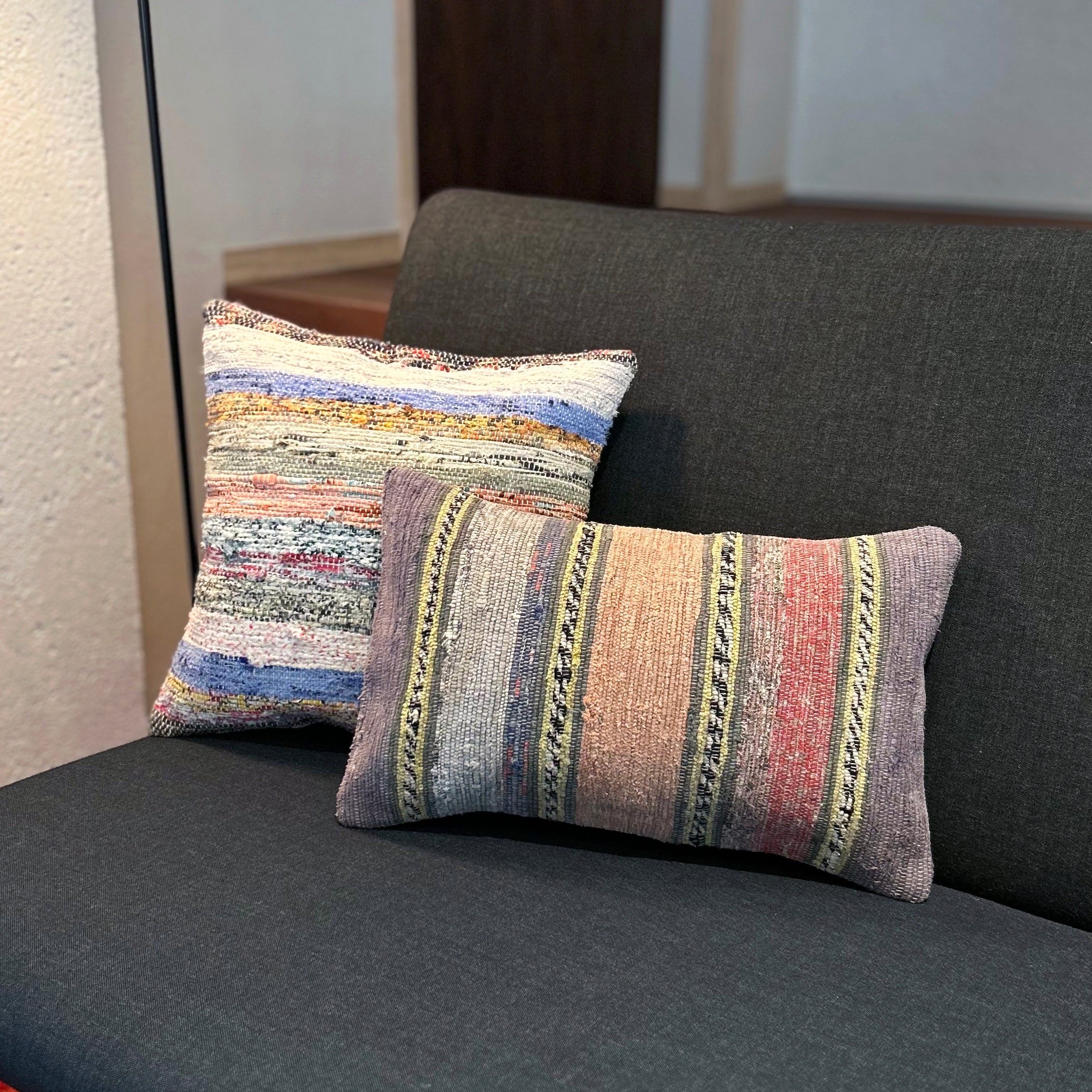 お部屋にこの手作りで本物のキリムクッションが一つあるだけで、その雰囲気は一転します。