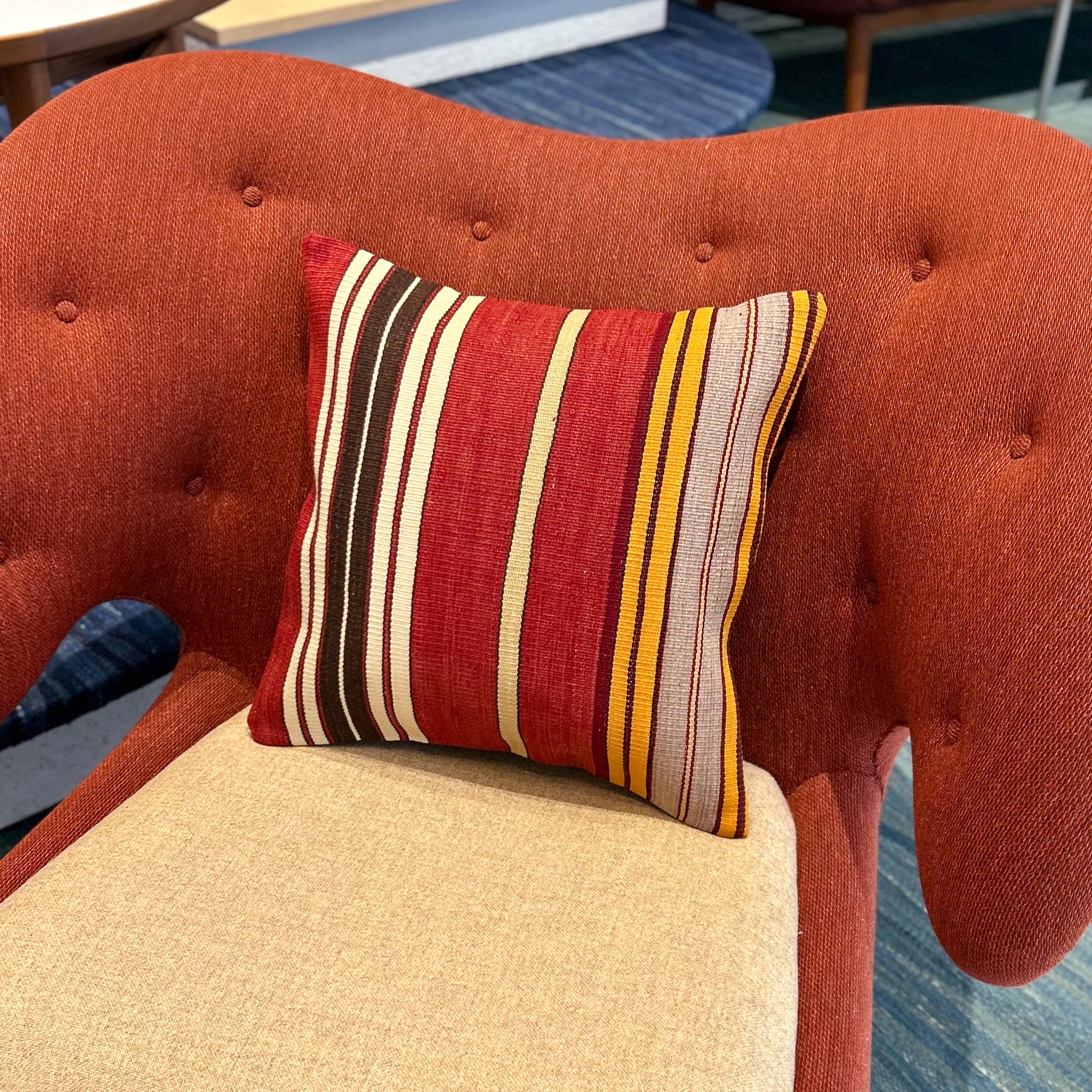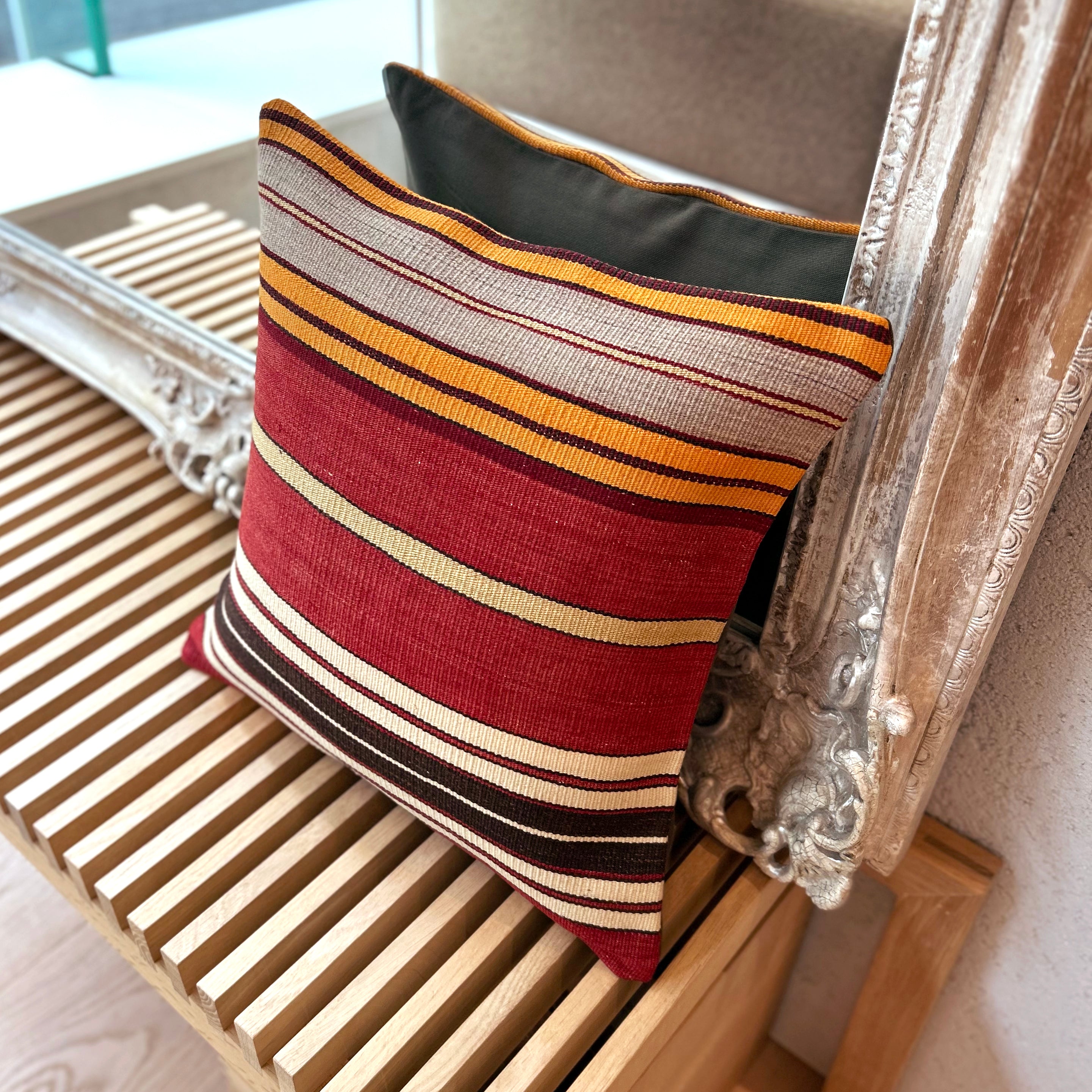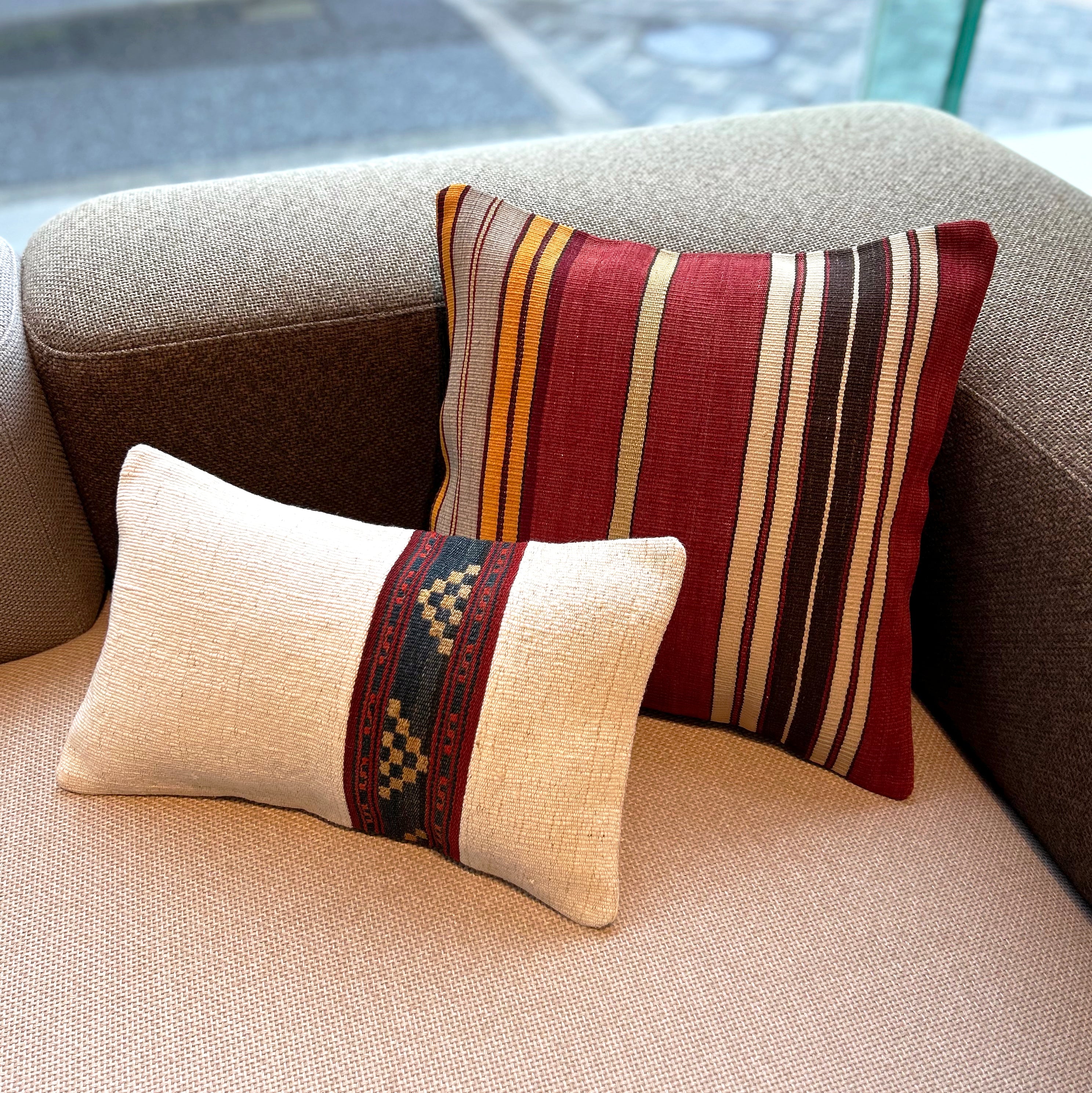 お部屋にこの手作りで本物のキリムクッションが一つあるだけで、その雰囲気は一転します。