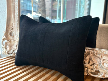 シンプルで深い紺色のパッチワークのアンティークキリムクッションです。