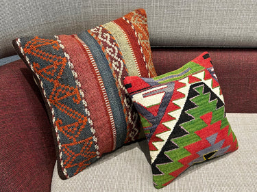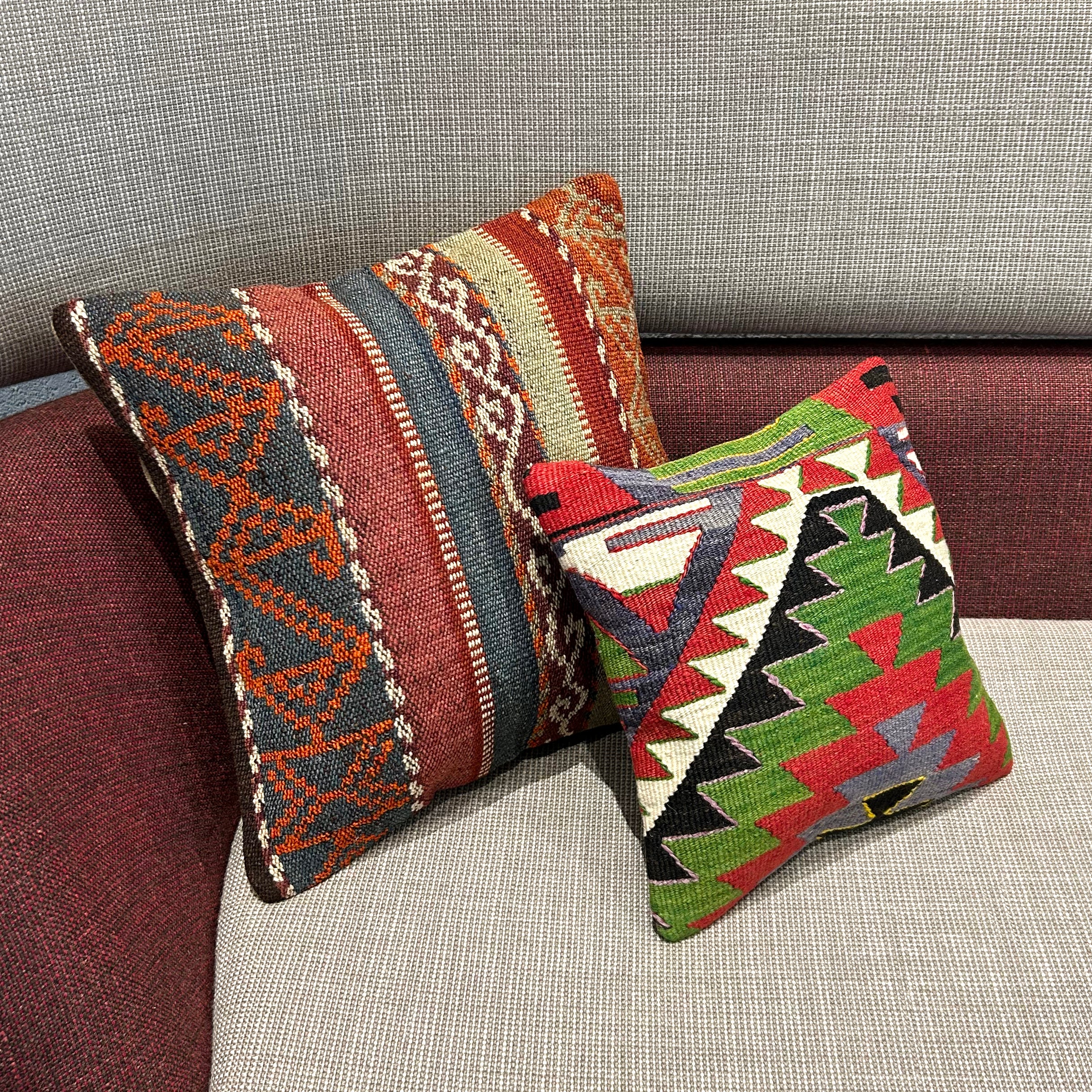 お部屋にこの手作りで本物のキリムクッションが一つあるだけで、その雰囲気は一転します。