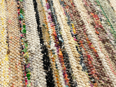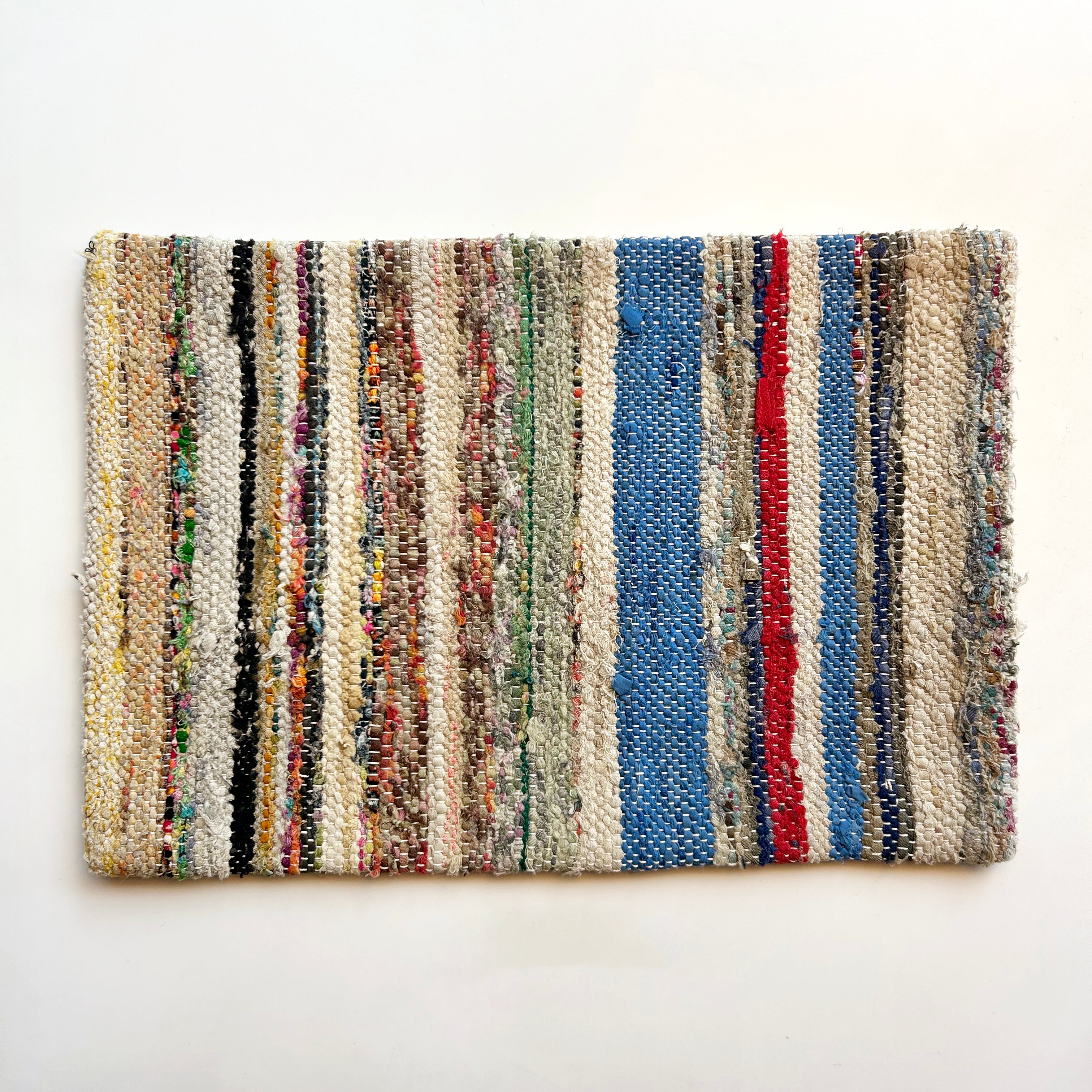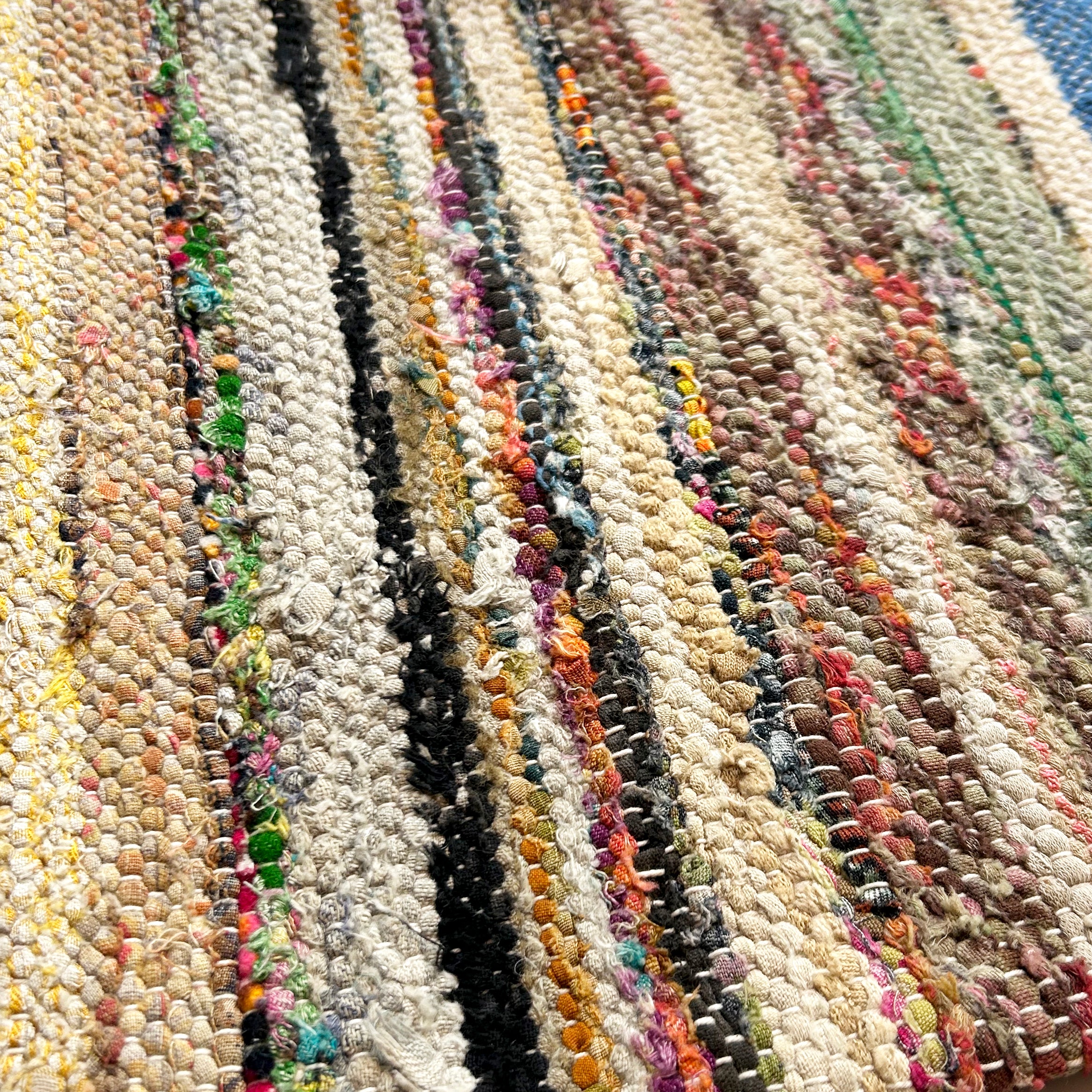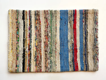 爽やかでカラフルな様々な色の糸がランダムに織り込まれ、賑やかで楽しいです。
