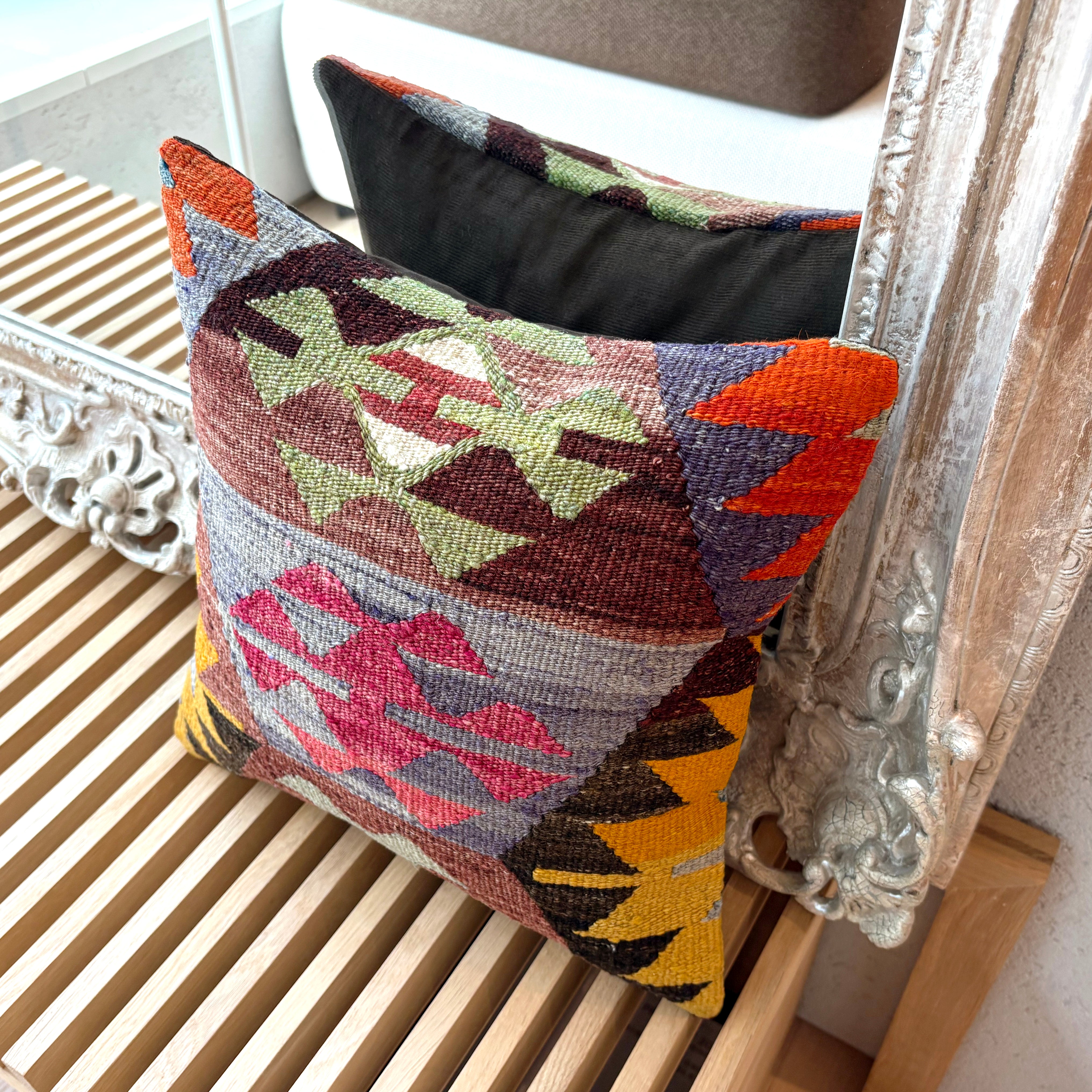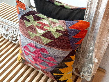 アブラッシュ がとても美しく、上品で表情豊かなキリムクッションです。