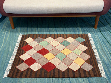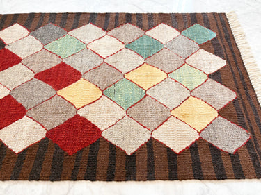 玄関マット トルコ・ロゴバキリム 上質な現代キリム ROGOBA KILIM® キリムラグ 94×65㎝ (No.23087)