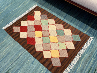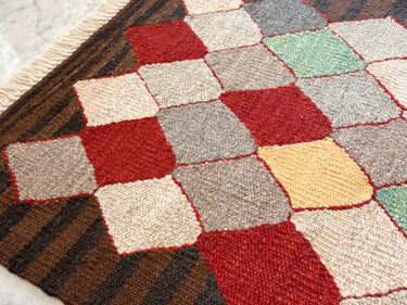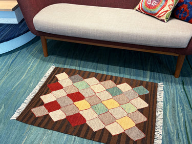 色の組み合わせがめずらしく、とても可愛らしい印象の ROGOBA KILIM(ロゴバキリム)です。