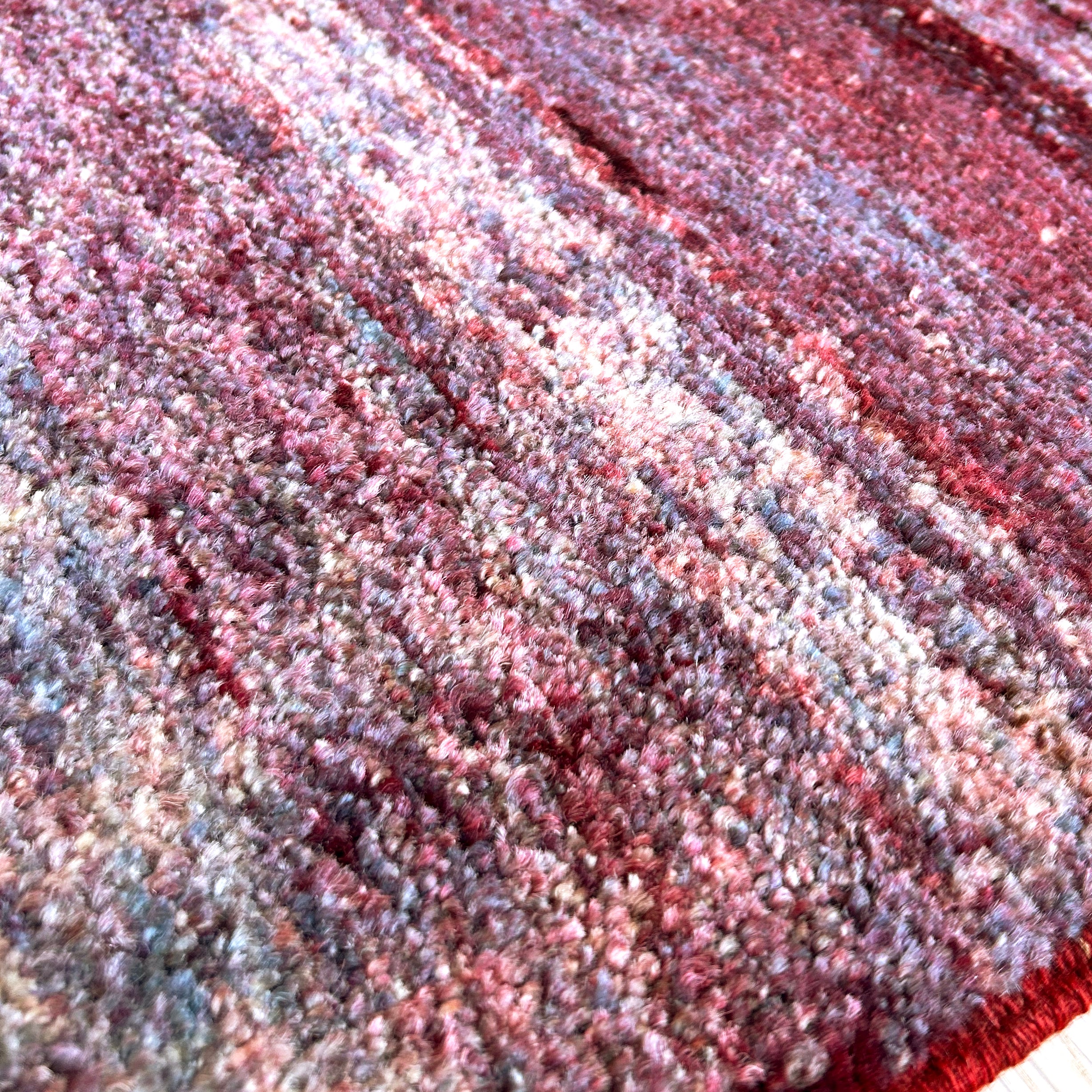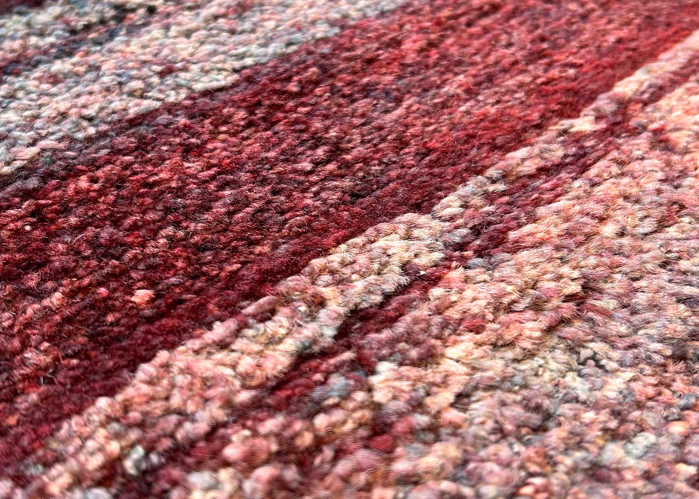 また、水平機で織られる手織り絨毯のパイルは、織り手の方向に寝てゆきます。そのため織り上がった絨毯は、見る方向や光の加減によって、色合いや風合いが変化します。