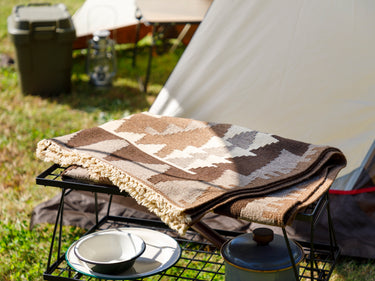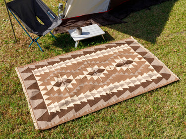 サイズ的には、リビングのソファーなどと合わせてお使いいただくか、広い玄関のマットや、床に置く絵、壁に掛けるタペストリーなど、インテリアを落ち着いた雰囲気にまとめてくれます。キャンプの際にもぴったりです!