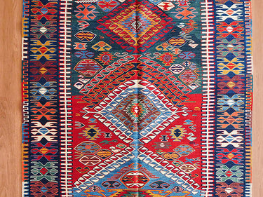 このキリムは、トルコ内陸部のアナトリア地方の中心地コンヤの近郊で、約20年前に織られたものです。