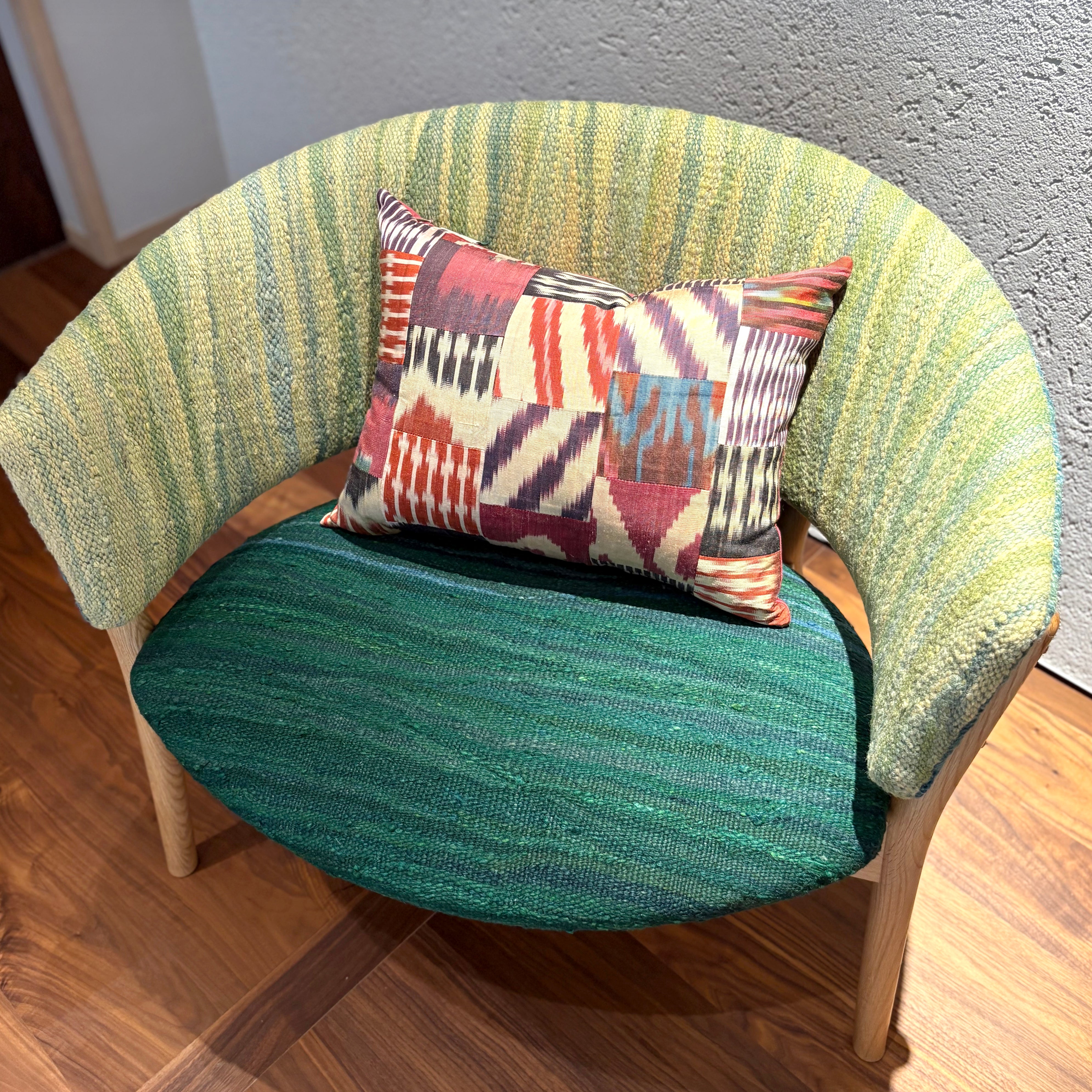【 ROGOBA Silk Cushion 】イカット パッチワーク シルククッション 36×48㎝ (MC-0701)