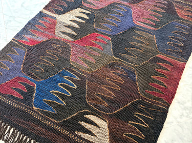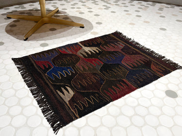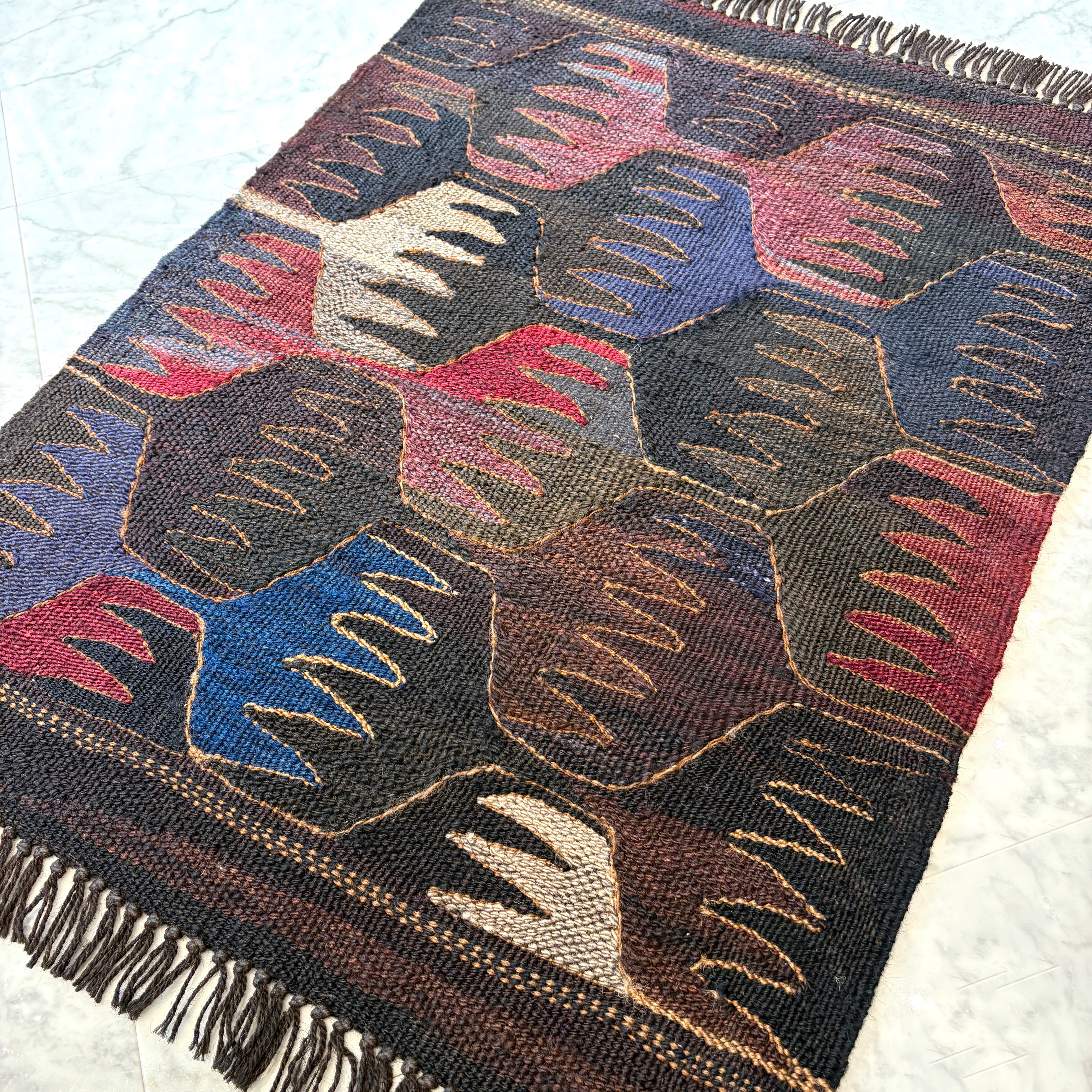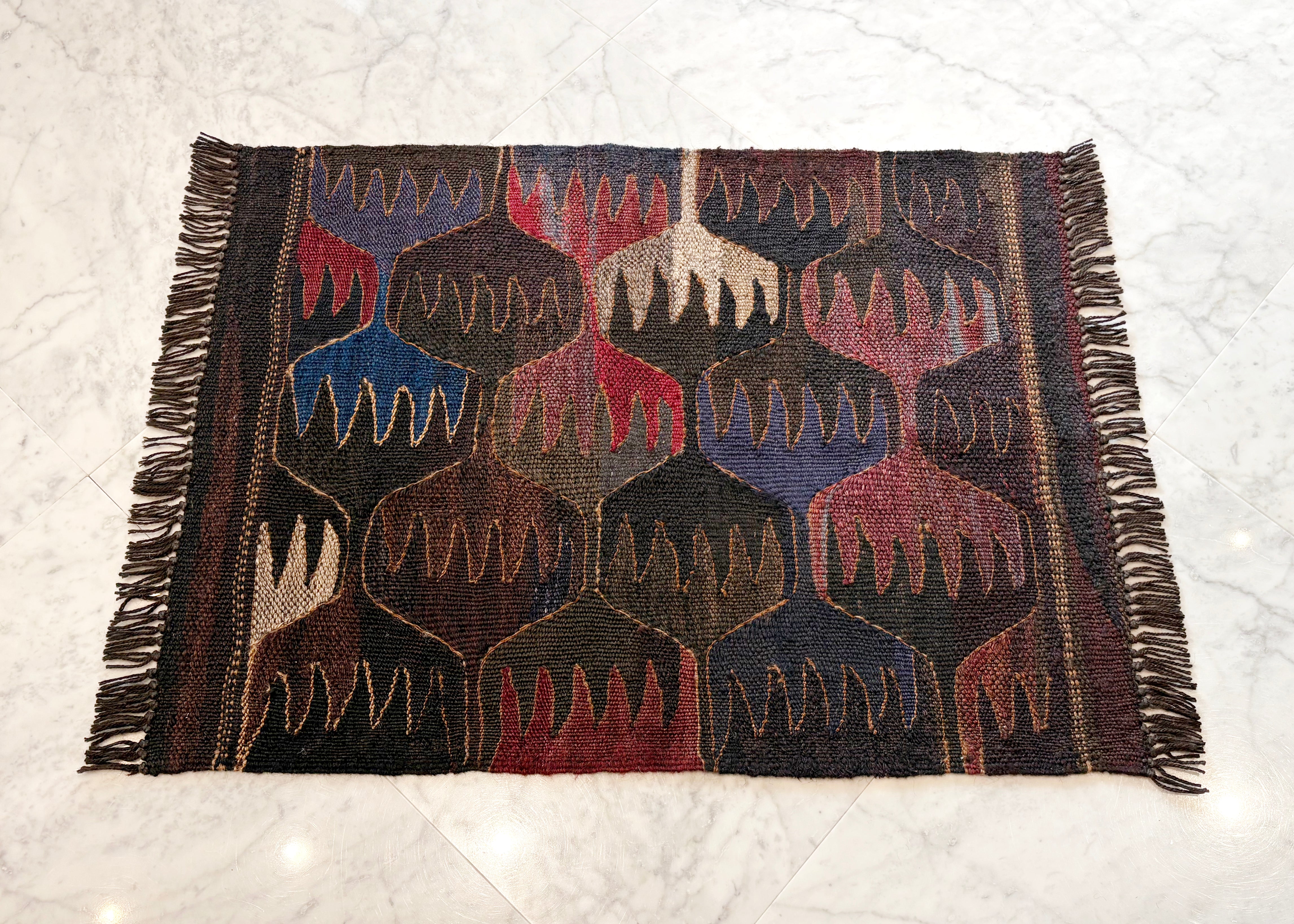 玄関マット トルコ・ロゴバキリム ブラックキリム 上質な現代キリム ROGOBA KILIM® 72×54㎝ (No.23214)