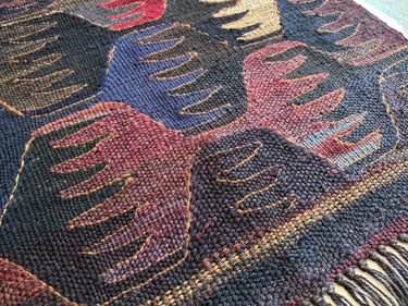 このキリムの文様・デザインは、猛禽類の王とも言われる鷲(ワシ)が羽を広げて大空を舞っている様子を、大きな羽に象徴させた(イーグル)と呼ばれる文様です。