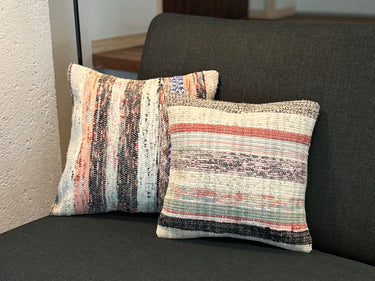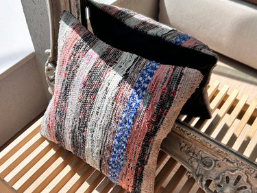 この Kilim Cushion(キリムクッション)は、ROGOBA(ロゴバ)が Old Textile(オールドテキスタイル・裂き織り)を加工して作製したキリムクッションです。