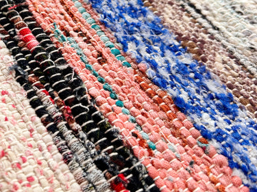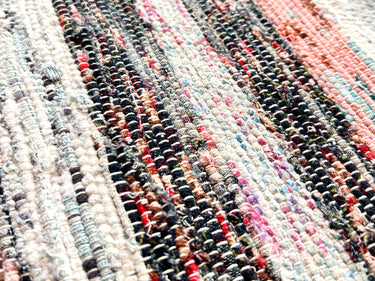 細かく裂かれた様々な色の布が、繊細に織り込まれています。