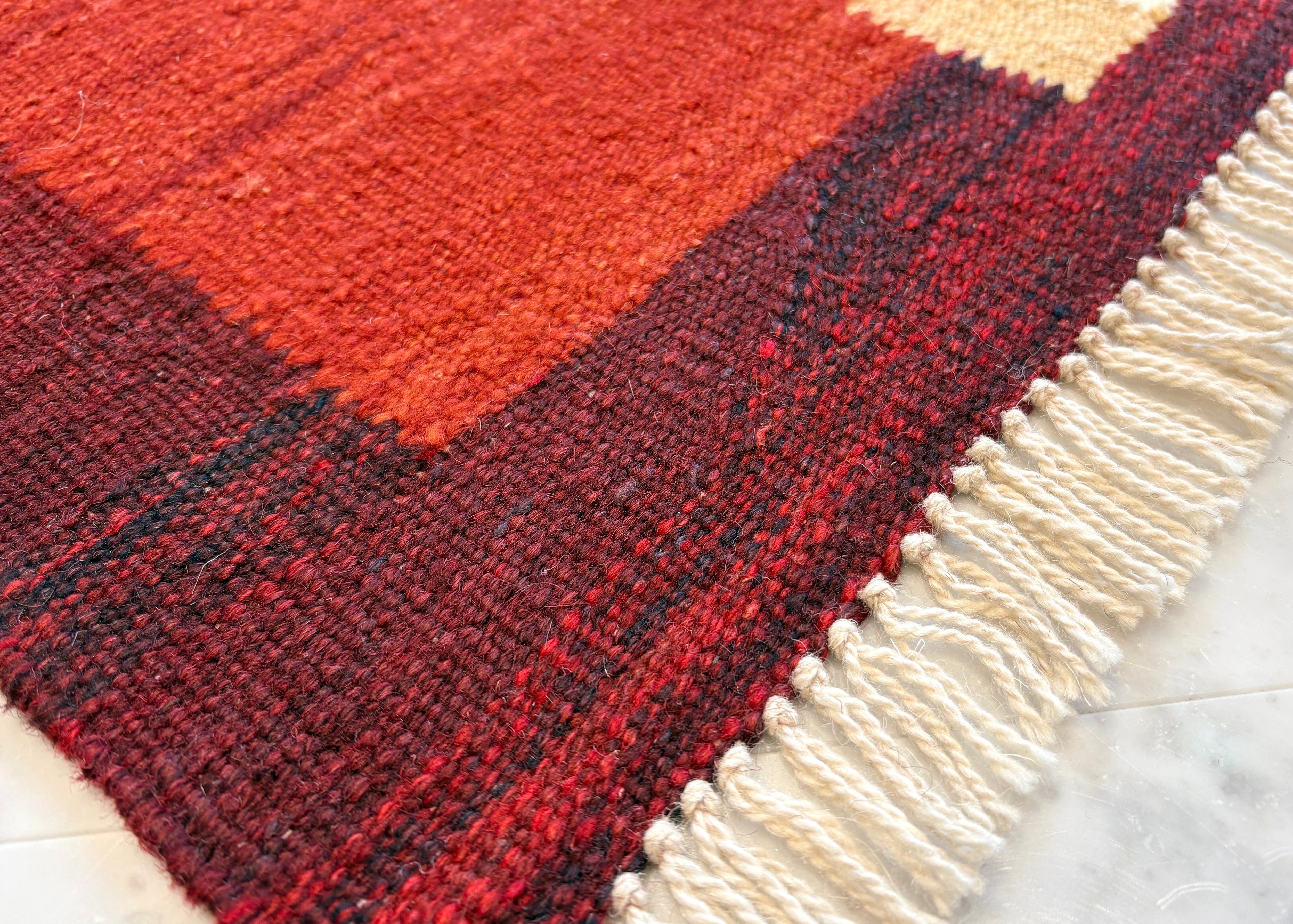 ROGOBA KILIM は、トルコの最も優れた現在の織り手が、時間をかけて丁寧に紡ぎ染めた良質なウールをセンス良く織りあげた、表情豊かなキリムです。